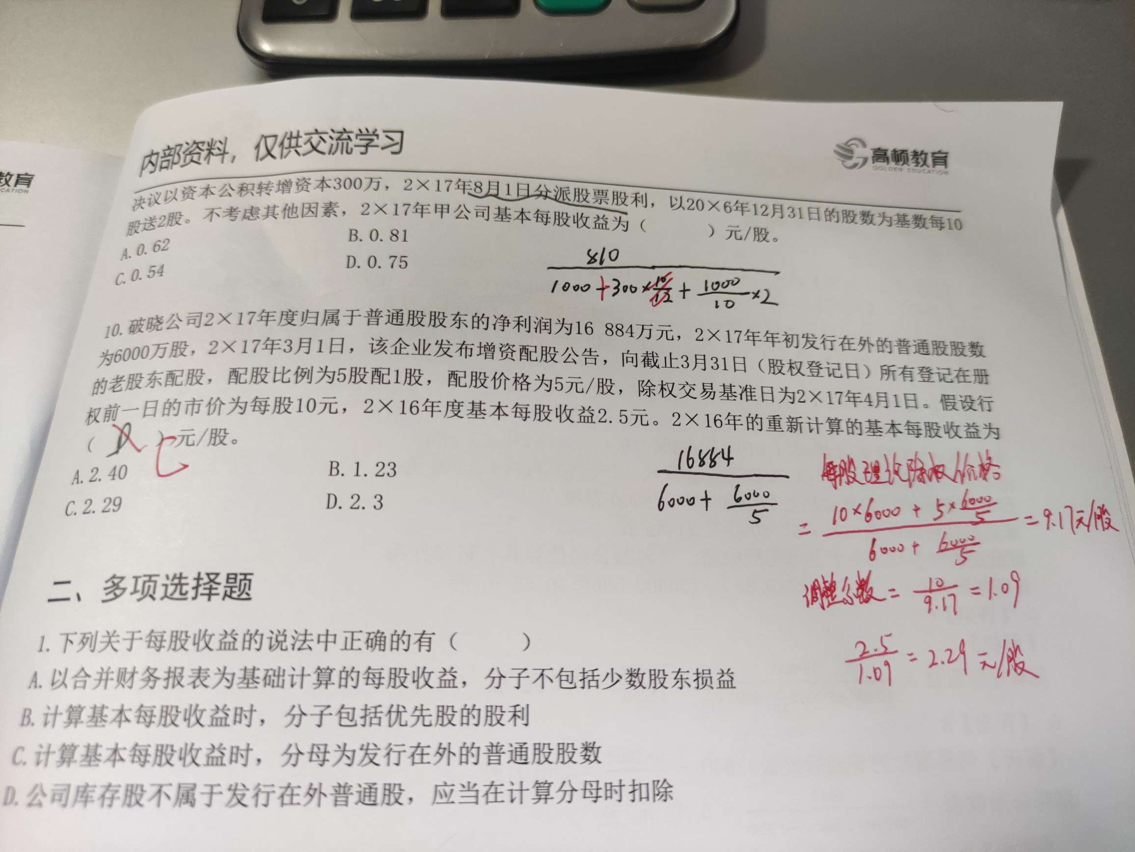 老师为什么这两道题一个每股收益减18个人的,而另一道题不减呢...