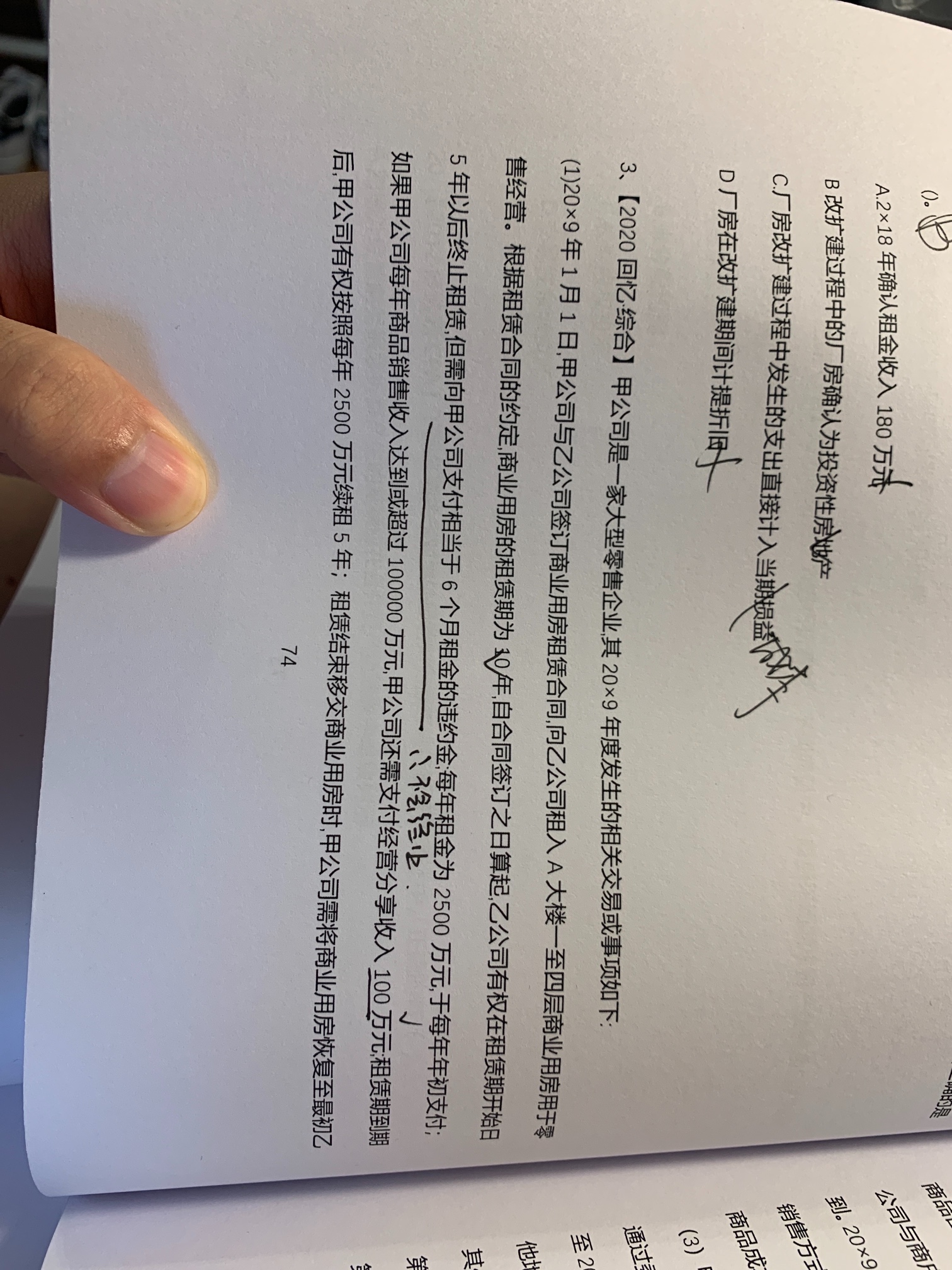 教师回复: 勤奋努力爱学习的同学,你好~针对你说的这个问题,1、在租赁期开始日,确认使用权资产和租赁负债,会计分录是:借:使用权资产 2,600,000租赁负债-未确认融资费用 550,000=3,150,000-2,600,000贷:租赁负债-租赁付款额 3,150,000=每年的租赁付款额450,000*租赁期72、在后续计量时,使用权资产要计提折旧(类似于固定资产的管理),会计分录是:借:管理费用 371,428.57贷:使用权资产累计折旧 371,428.57=2,600,000/7(租赁期为7年,按照7年计提折旧)3、在后续计量时,要确认租赁负债的利息,会计分录是:借:财务费用 131,040贷:租赁负债-未确认融资费用 131,040=期初账面价值2,600,000*实际利率5.04%4、按照当年销售额超过1,000,000元的,当年应再支付按销售额的2%计算的租金,这个属于可变租赁付款额;在实际发生时,直接计入当期损益,会计分录是:借:销售费用 30,000贷:应付账款 30,000=销售额1,500,000*比例2%综合看来,对利润的影响金额合计是:管理费用( -371,428.57)+财务费用( -131,040)+销售费用 (-30,000)=-532,468.57如还有不清楚的地方,欢迎随时提问,Andy老师会尽快解答,爱学习的你是最棒的,加油~