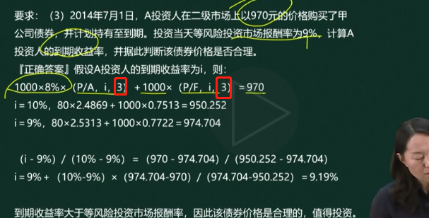 到期日还有三年,每半年付息一次,那这里的3不是应该改为6吗,前面利息求年金现值应该乘以1/2