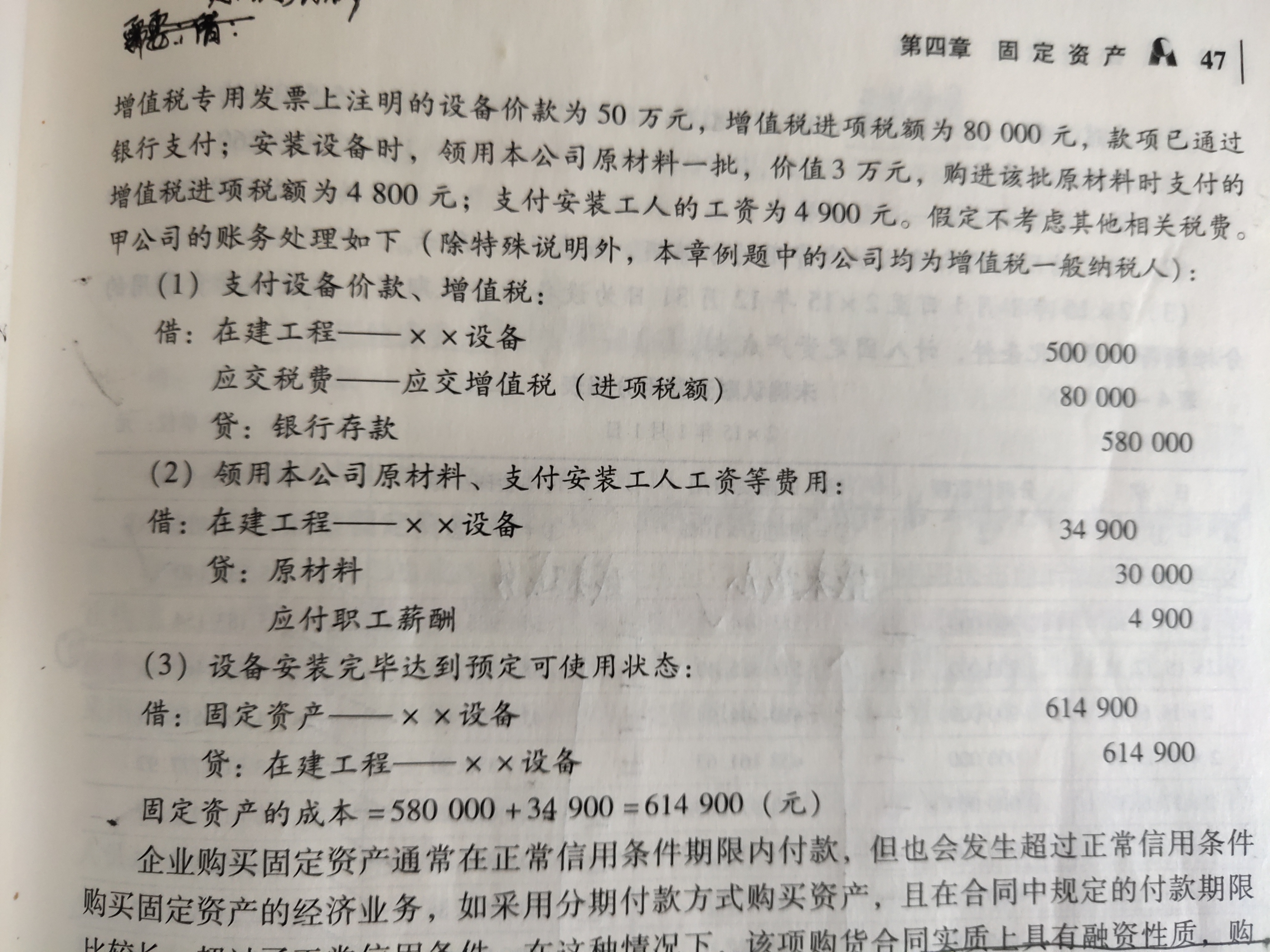 这道题中固定资产的成本是580000+34900,其中的580000是设备的价款和增值税费,这个增值税费是要被抵扣的,是不算在固定资产的成本里面的,所以说是我错了还是书上的错了?
