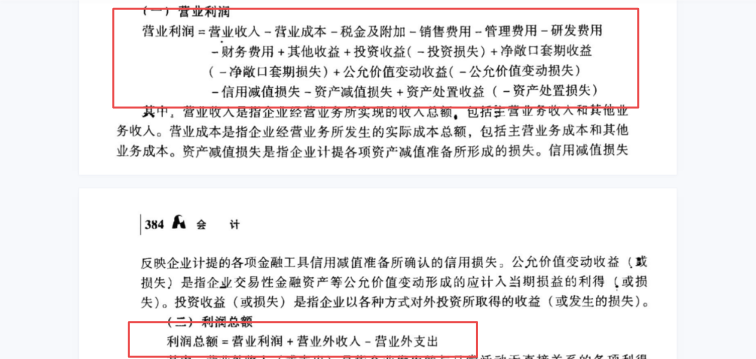 直接计入所有者权益的利得或损失,例如其他综合收益就只影响所有者权益,不影响营业利润和利润总额。下图是教材中的公式: