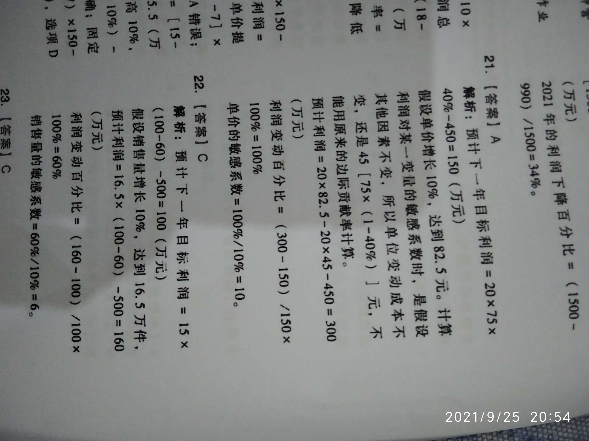 然后用利润的变动百分比÷10% 得到该因素的敏感系数~