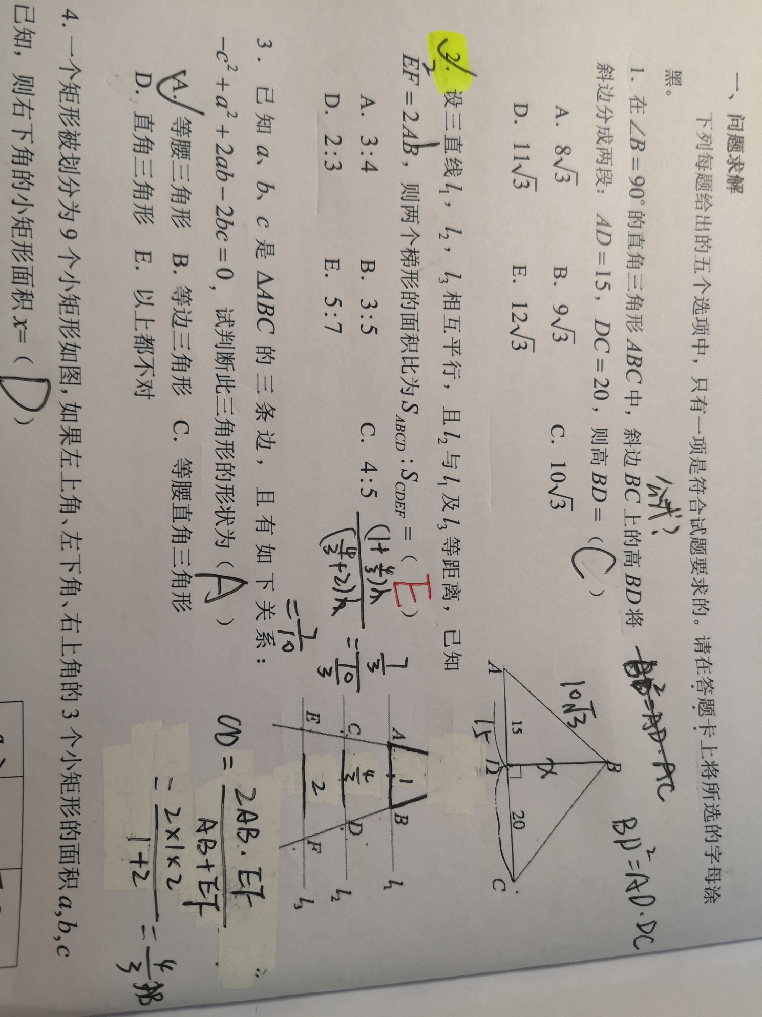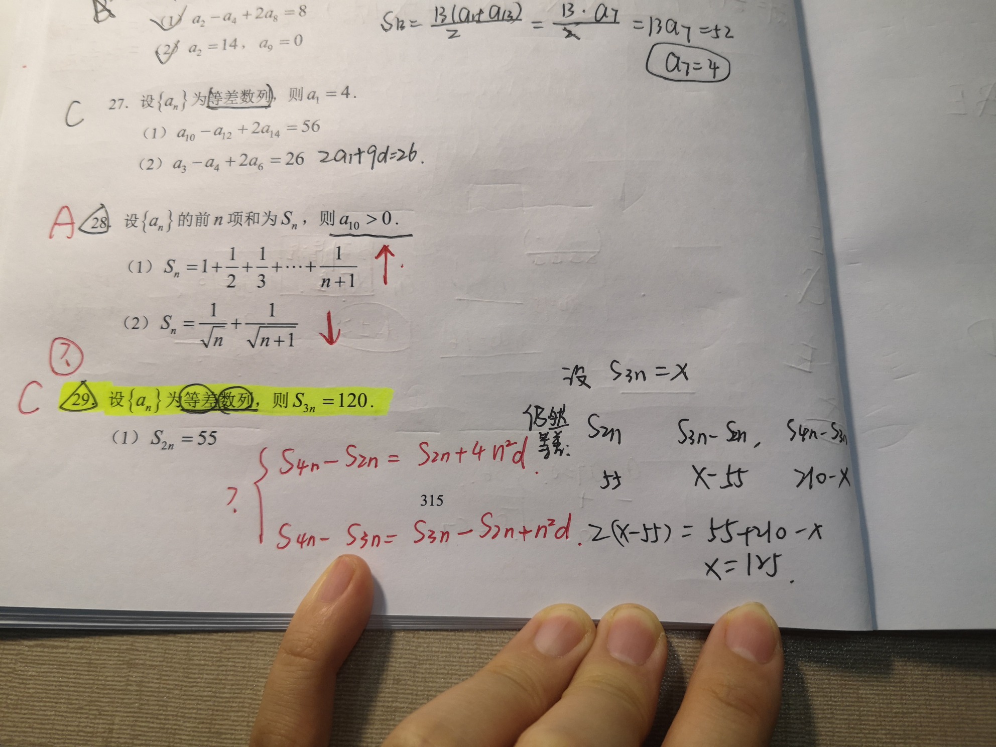 老师您好! 29题数列题,右边黑笔是我的思路,不知道为什么错了? 第2题,是用了梯形里面那个调和平均数算的,结果是7:10,不知道为啥不对