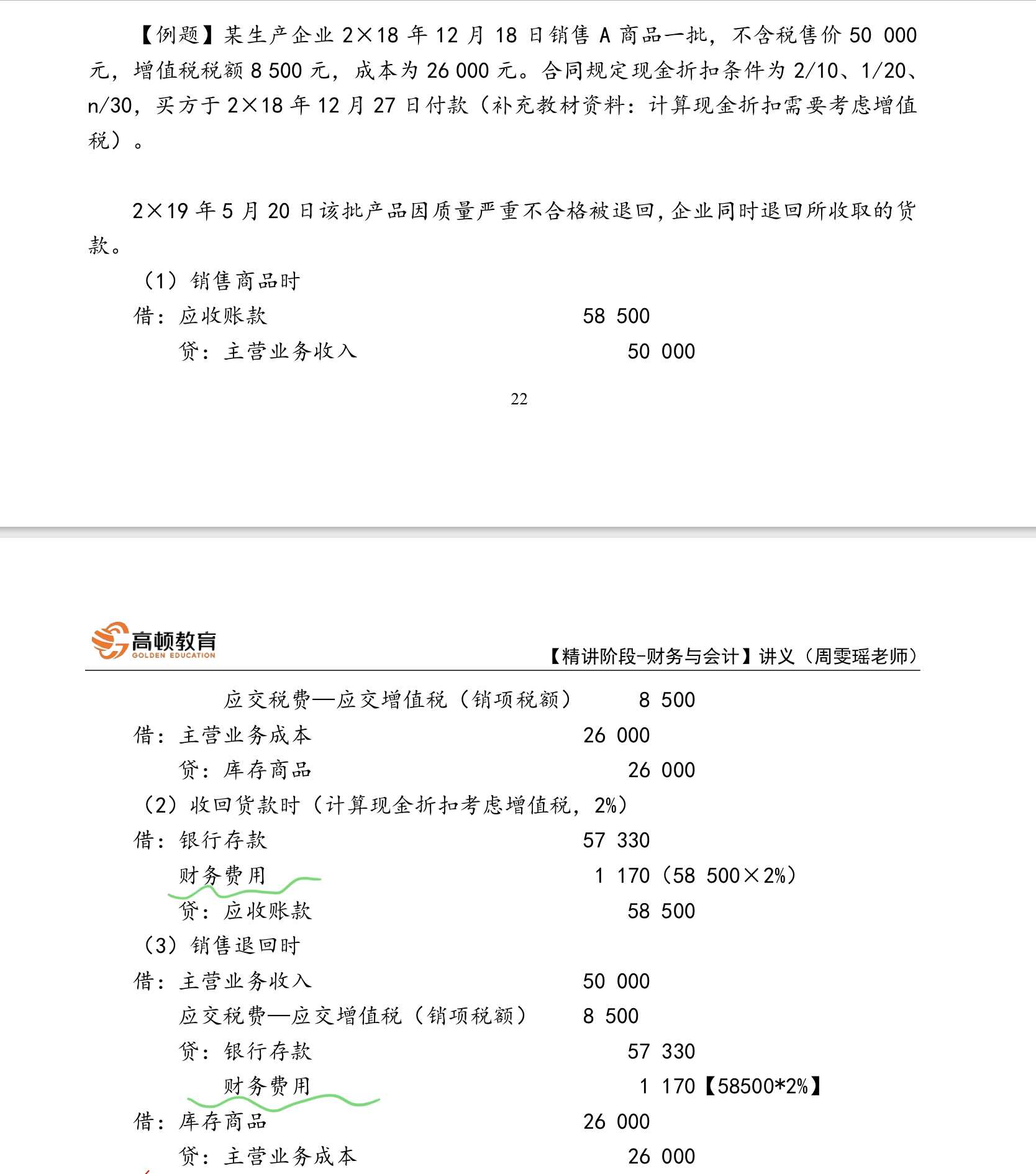我们常说的现金折扣通常指第一种,第二种的重点是在考察可变对价。