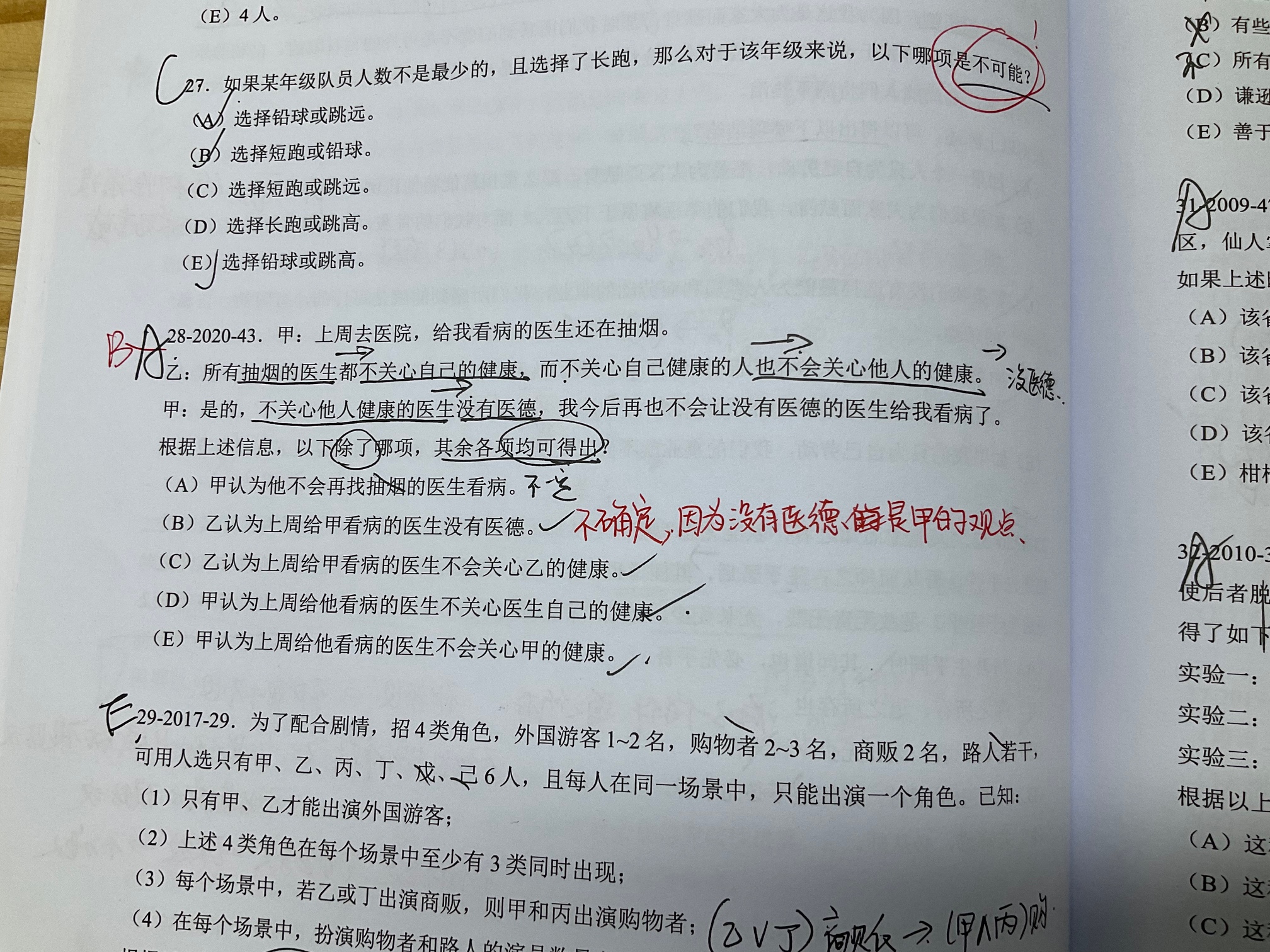 老师请问28题A选项为什么是是确定的呢?抽烟的—不关心自己健康的—不关心他人健康的—没有医德的,甲说再也不会找没医德的看病了,有后未必有前,甲不会找抽烟的给他看病不就是不确定的么