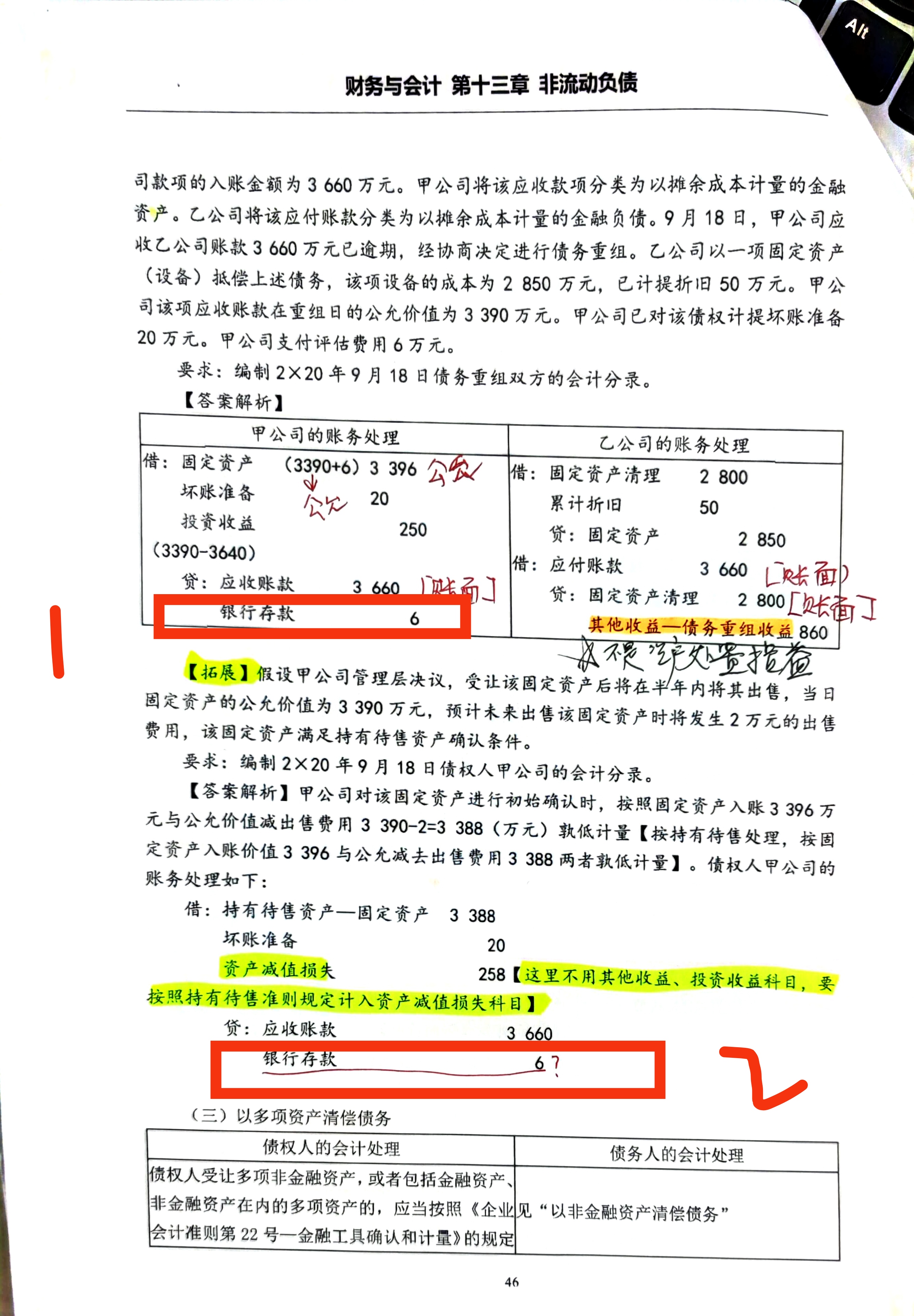 关于你提的第一个问题解释如下:在债务重组中,债权人取得的资产和正常取得资产一样,按照历史成本计量,包括买价和相关费用,所以6万要计入资产入账价值。