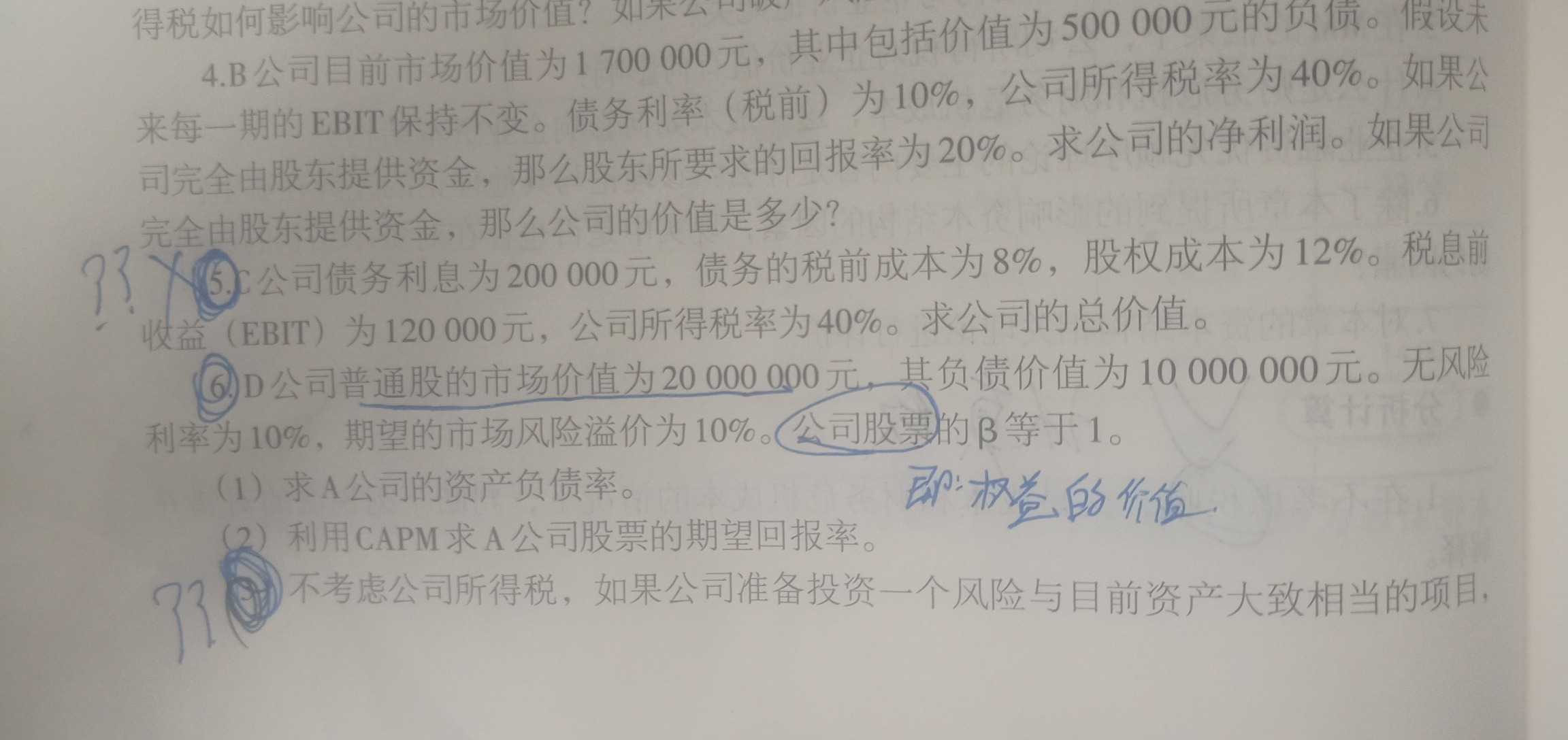 第五题的债务利息竟然比EBIT大,然后我就不会做了想要具体计算过程