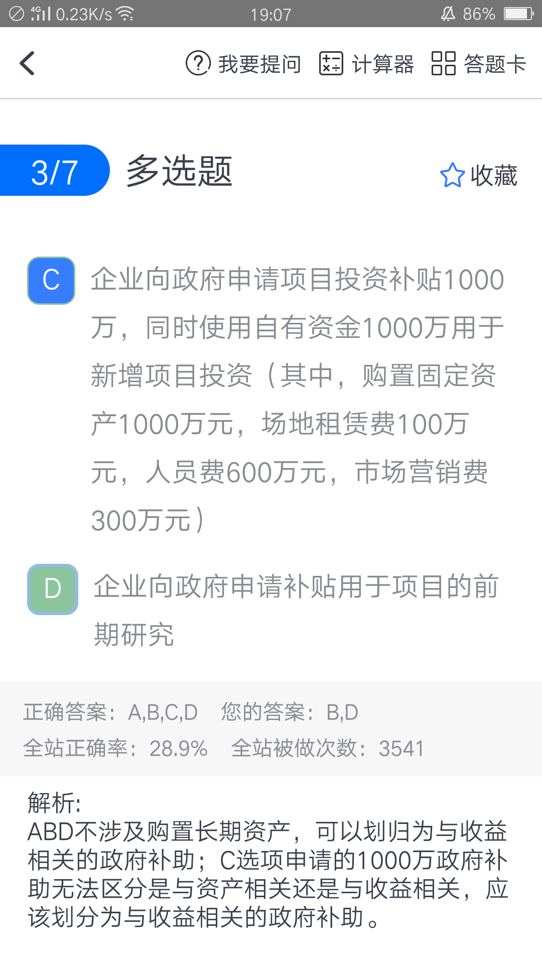 为什么c不能区分与资产和收益有关的政府补助啊,不能直接按比例分摊吗