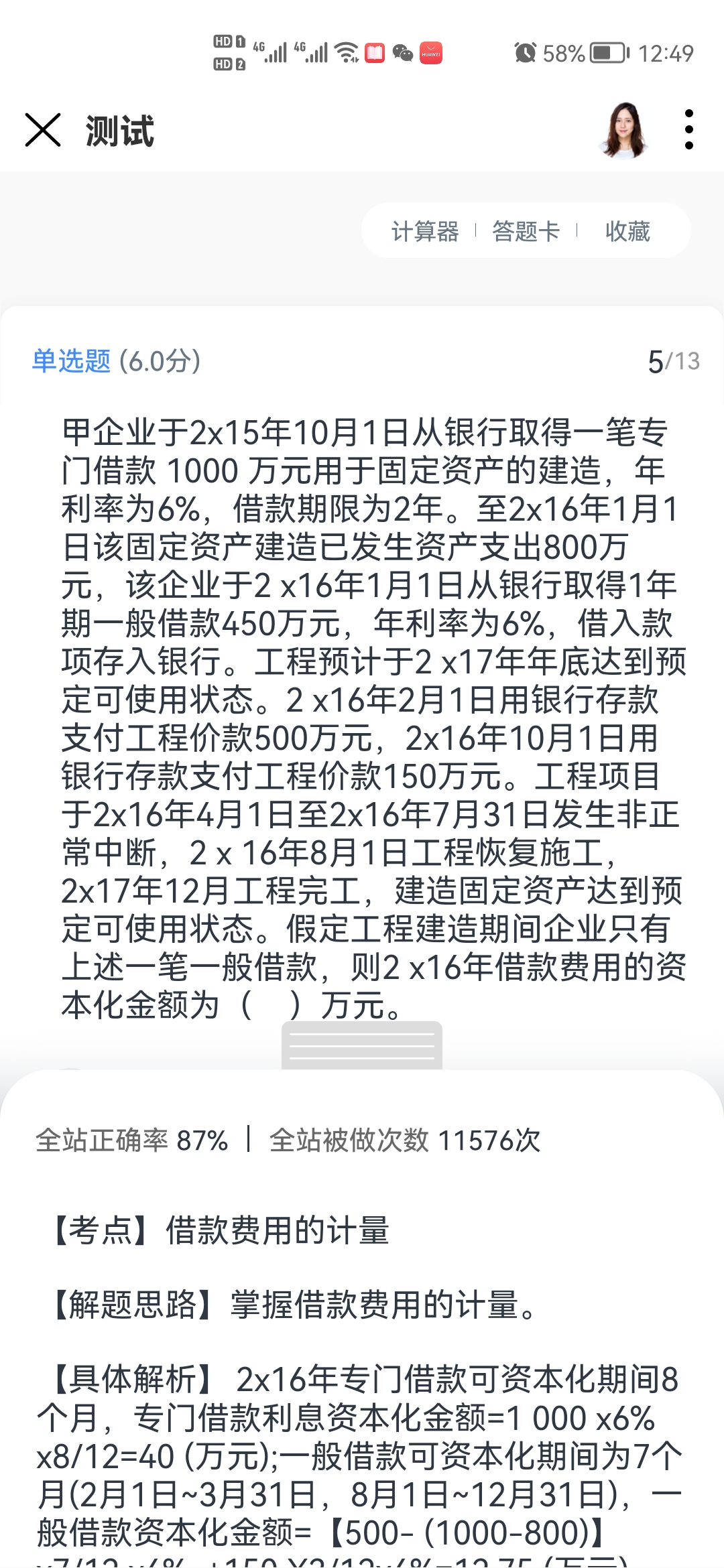 请问老师这边资本化不是8个月么?8月份还有一点可以用专门借款...