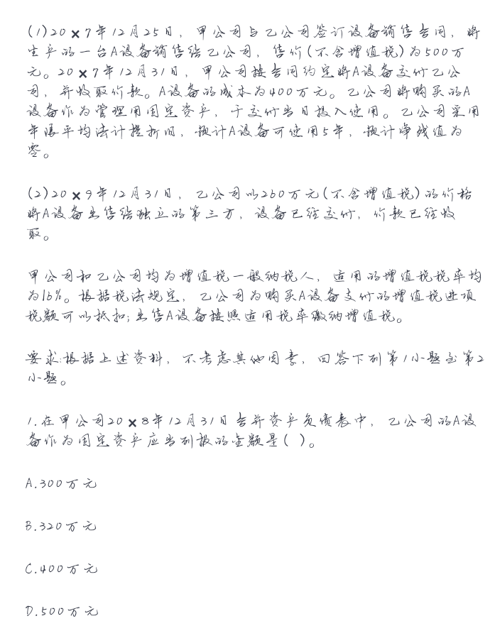 老师 这个 为什么不用500来算折旧 他也没说合同上400是成交价啊 为什么只用成本算折旧