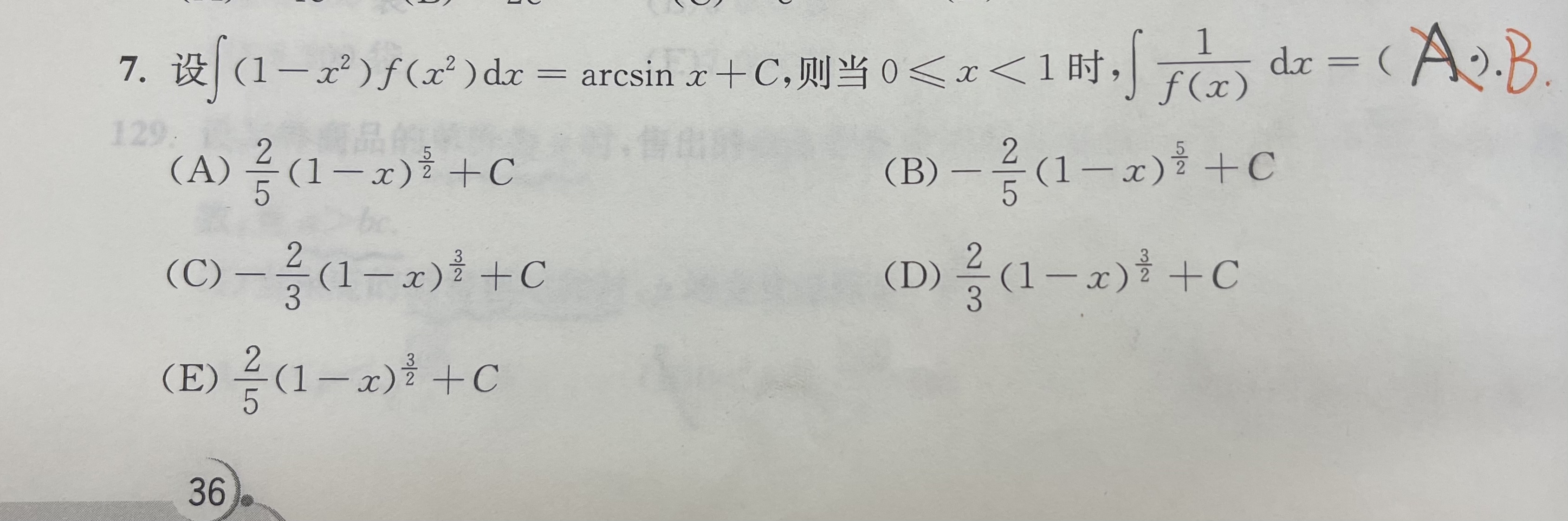 为什么这道题答案是B啊?前面的负号是怎么得来的呀?按照公式应该就是正的呀?