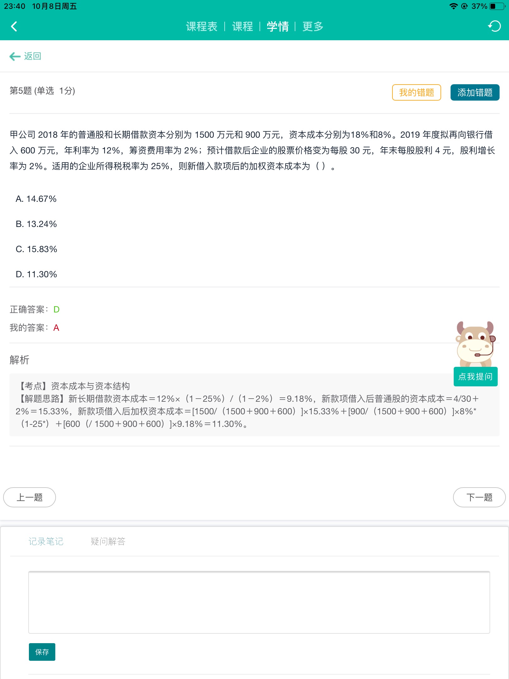 老师你好,你帮我看下这道题第三小问,求加权平均资本成本,为什...