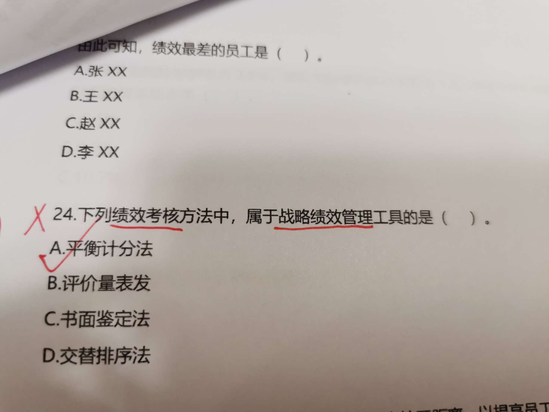 同学在遇到绩效考核方法的题目时看到有战略两个字,就选平衡计分卡。