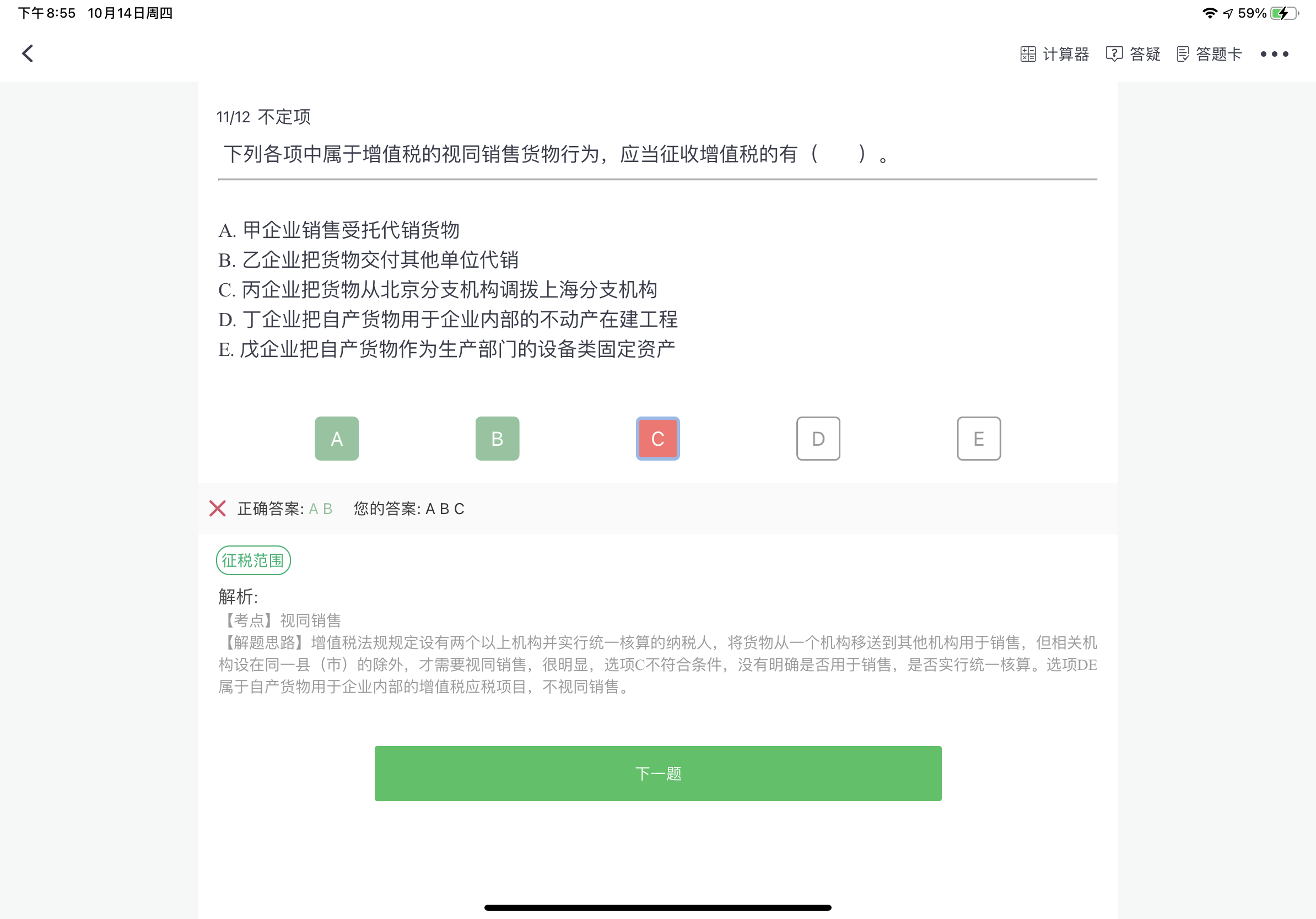 孔同学同学您好,此题c只说了调拨到上海,并没有说销售,而且分支机构也不一定统一核算业务,所以说这一条视同销售的适用需要把条件都说清楚才行。