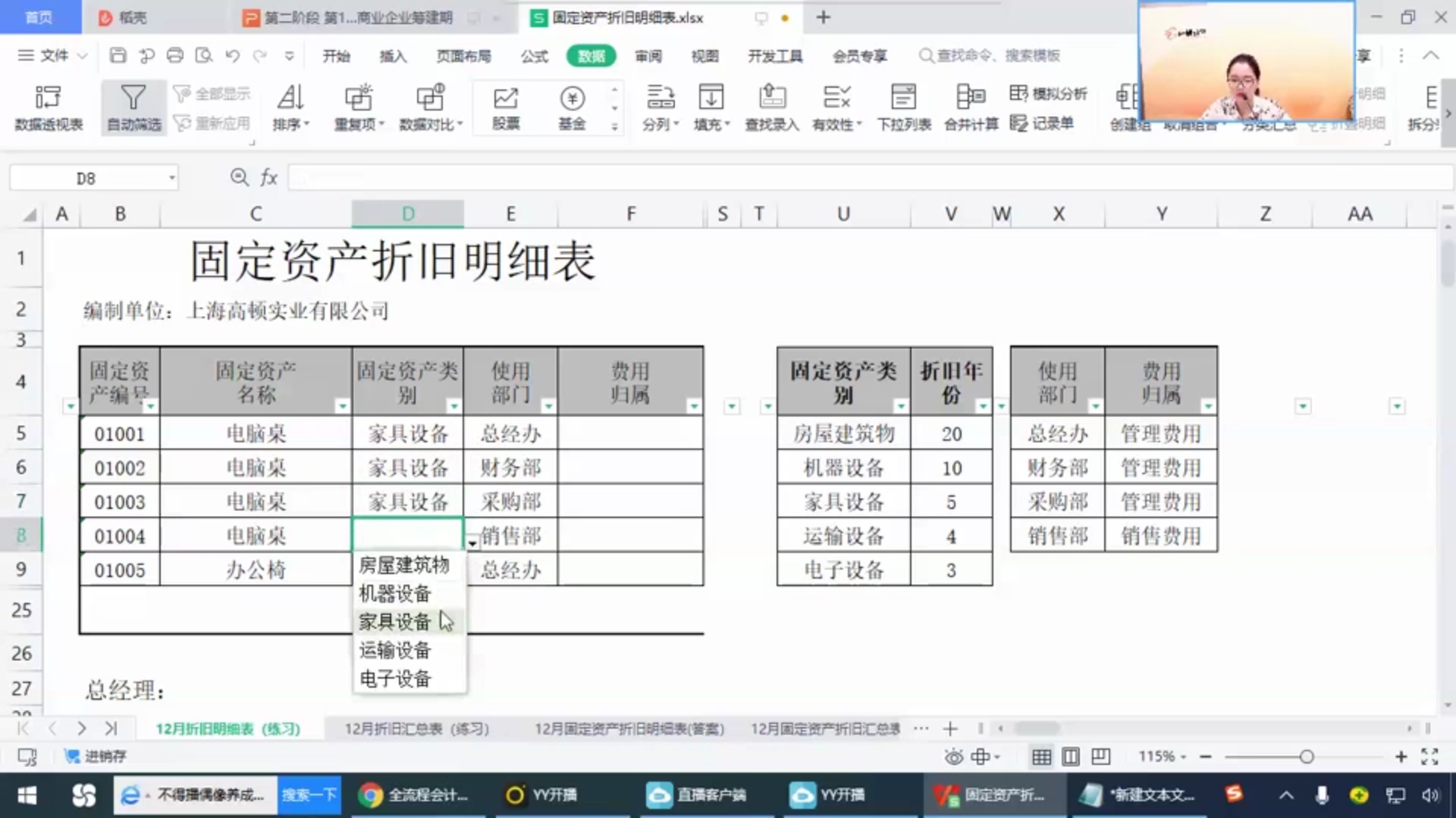 老师,固定资产折旧表练习的这个表,从哪里获取?班班老师那里说的没有呢