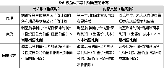 这个表是长期股权投资权益法下公不等于账的总结,合并报表下按权益法调整长期股权投资,借:长期股权投资(这里子公司调整后净利润只需要考虑评估增减值造成的公不等于账,不需要考虑内部交易。) 贷:投资收益