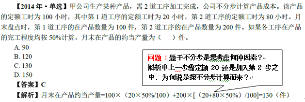 老师 ,第一步骤的完工产品是200件,答案里怎么是按120件...