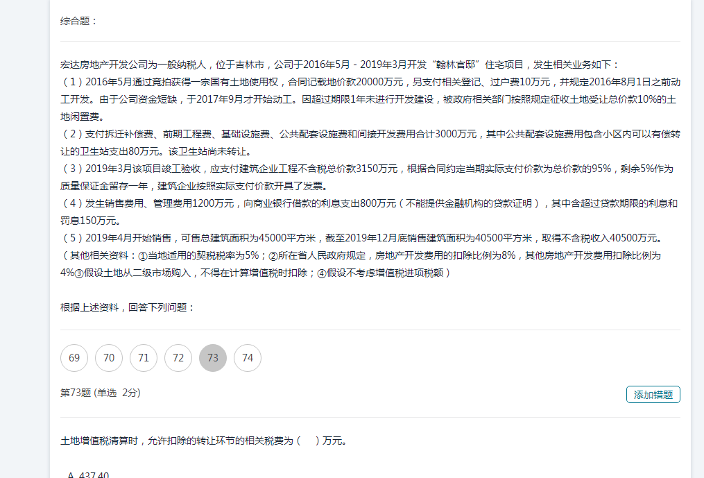 老师这里有个点我一直懵,关于这个土增,不是说房开企业选择一般计税是差额计税增值税么,那这里的大题为什么不是转让价不含税的减去原来的地价款,还是我理解有误。如果是不含税说明已经扣除地价款了吗