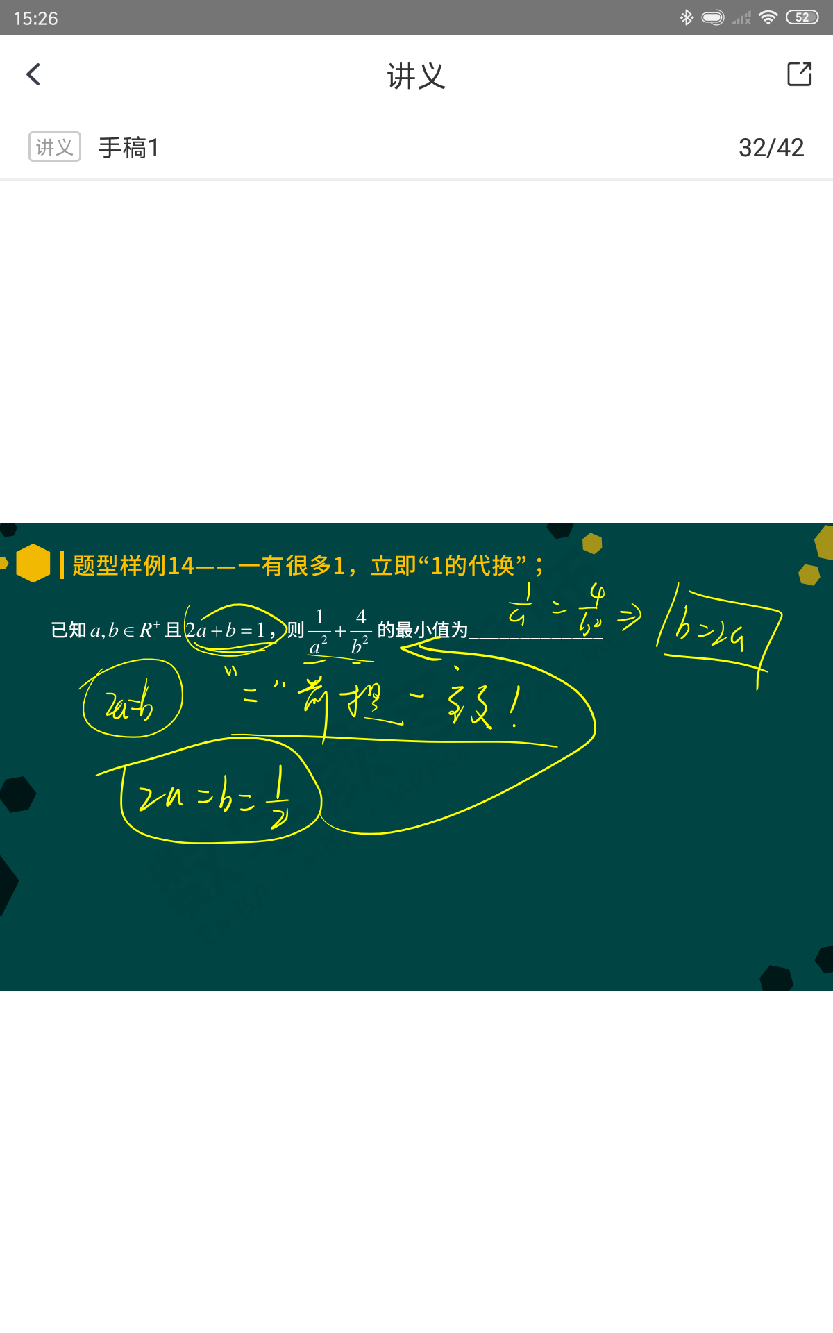 我想问一下2a+b=1和1/a²+4/b²的“=成立的前提一致”为什么2a+b=1就等于2a=b了
