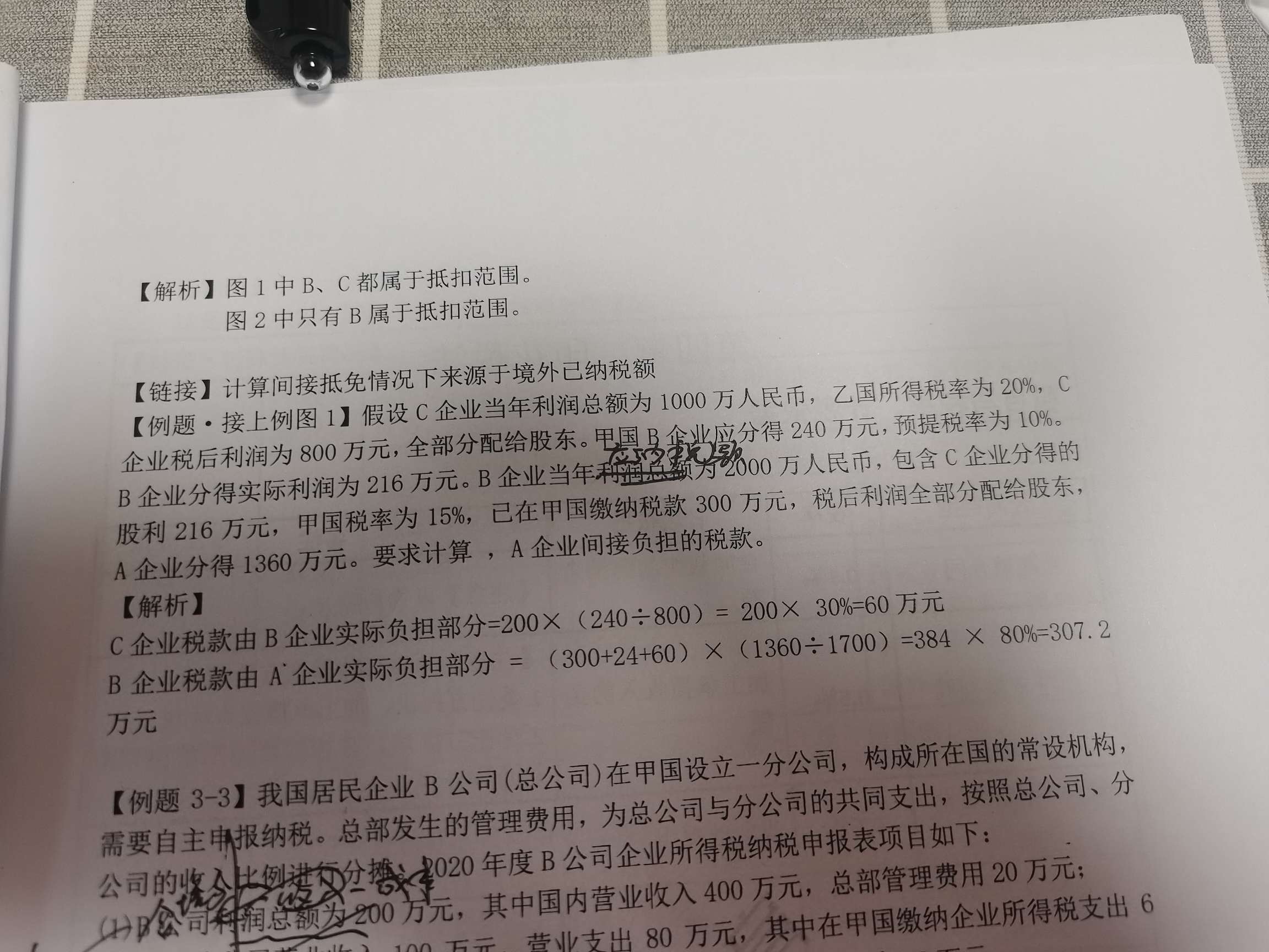 C企业所在国乙国征收了,前面征的200万是针对C企业的利润总额征的税,这里的纳税人是C企业,后面那个是针对C企业分给B企业的200万收的税,这个税是B企业应该交的,按照预提所得税税率,由C企业代扣代缴。两个纳税人不一样,比如你有一个公司营利1000万那么税务局对你征收一个税,你用税后利润分给国外的投资者300万,这个300万的纳税人是国外的投资者,他应该交的这个税由你代扣代缴