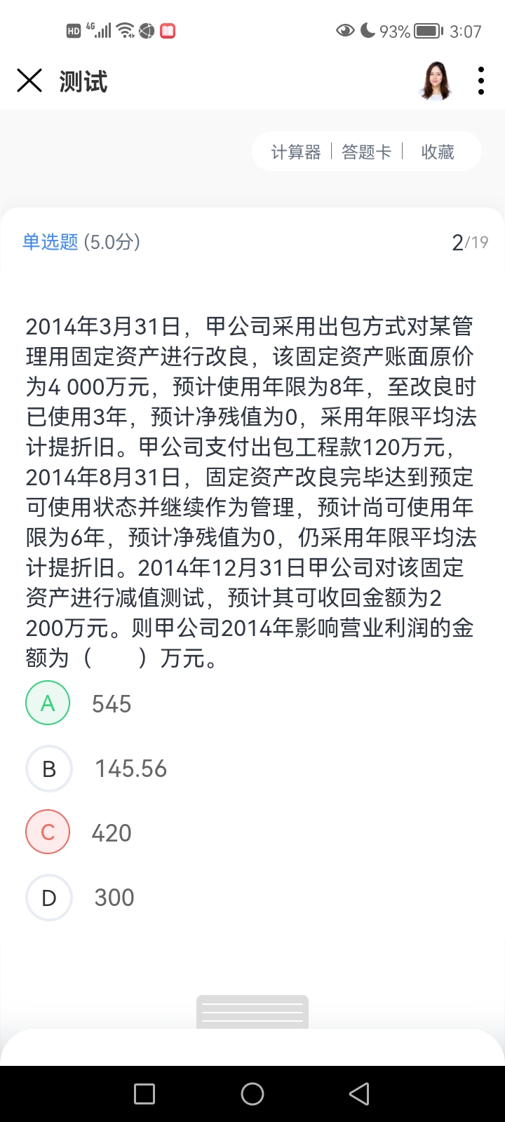 教师回复: 勤奋努力爱学习的同学,你好~针对你说的这个问题,1、在租赁期开始日,确认使用权资产和租赁负债,会计分录是:借:使用权资产 2,600,000租赁负债-未确认融资费用 550,000=3,150,000-2,600,000贷:租赁负债-租赁付款额 3,150,000=每年的租赁付款额450,000*租赁期72、在后续计量时,使用权资产要计提折旧(类似于固定资产的管理),会计分录是:借:管理费用 371,428.57贷:使用权资产累计折旧 371,428.57=2,600,000/7(租赁期为7年,按照7年计提折旧)3、在后续计量时,要确认租赁负债的利息,会计分录是:借:财务费用 131,040贷:租赁负债-未确认融资费用 131,040=期初账面价值2,600,000*实际利率5.04%4、按照当年销售额超过1,000,000元的,当年应再支付按销售额的2%计算的租金,这个属于可变租赁付款额;在实际发生时,直接计入当期损益,会计分录是:借:销售费用 30,000贷:应付账款 30,000=销售额1,500,000*比例2%综合看来,对利润的影响金额合计是:管理费用( -371,428.57)+财务费用( -131,040)+销售费用 (-30,000)=-532,468.57如还有不清楚的地方,欢迎随时提问,Andy老师会尽快解答,爱学习的你是最棒的,加油~