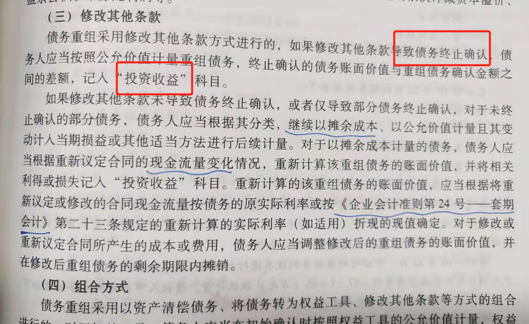债务人并不是只有金融资产才计入投资收益哦,还有修改条款所产生的差额也是投资收益哦