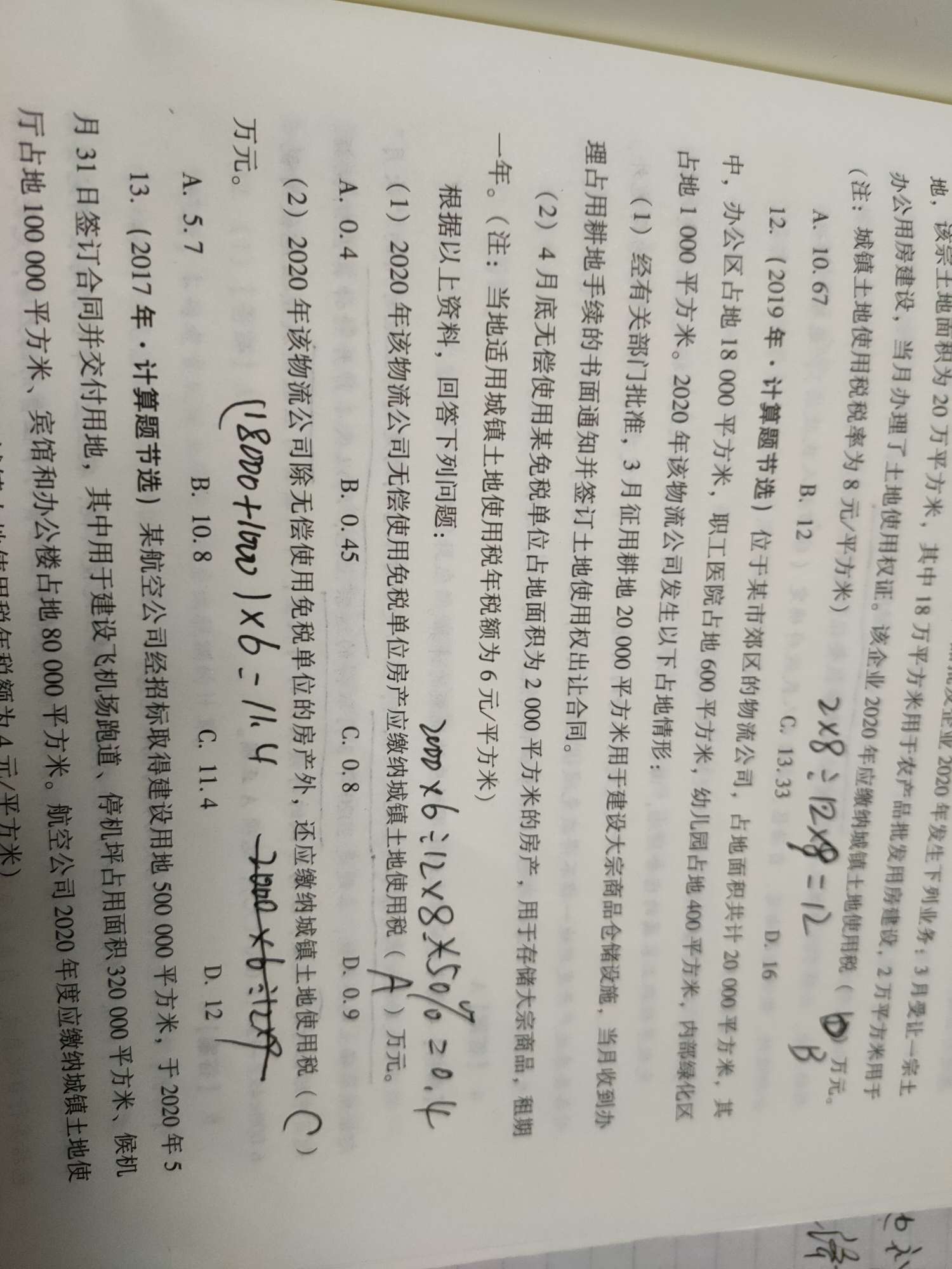 第二问的是物流公司除了无偿使用免税单位的房产之外,还要交多少税,这里面有一个考点是,凡是缴纳了耕地占用税的,自批准之日起满1年时缴纳城镇土地使用税