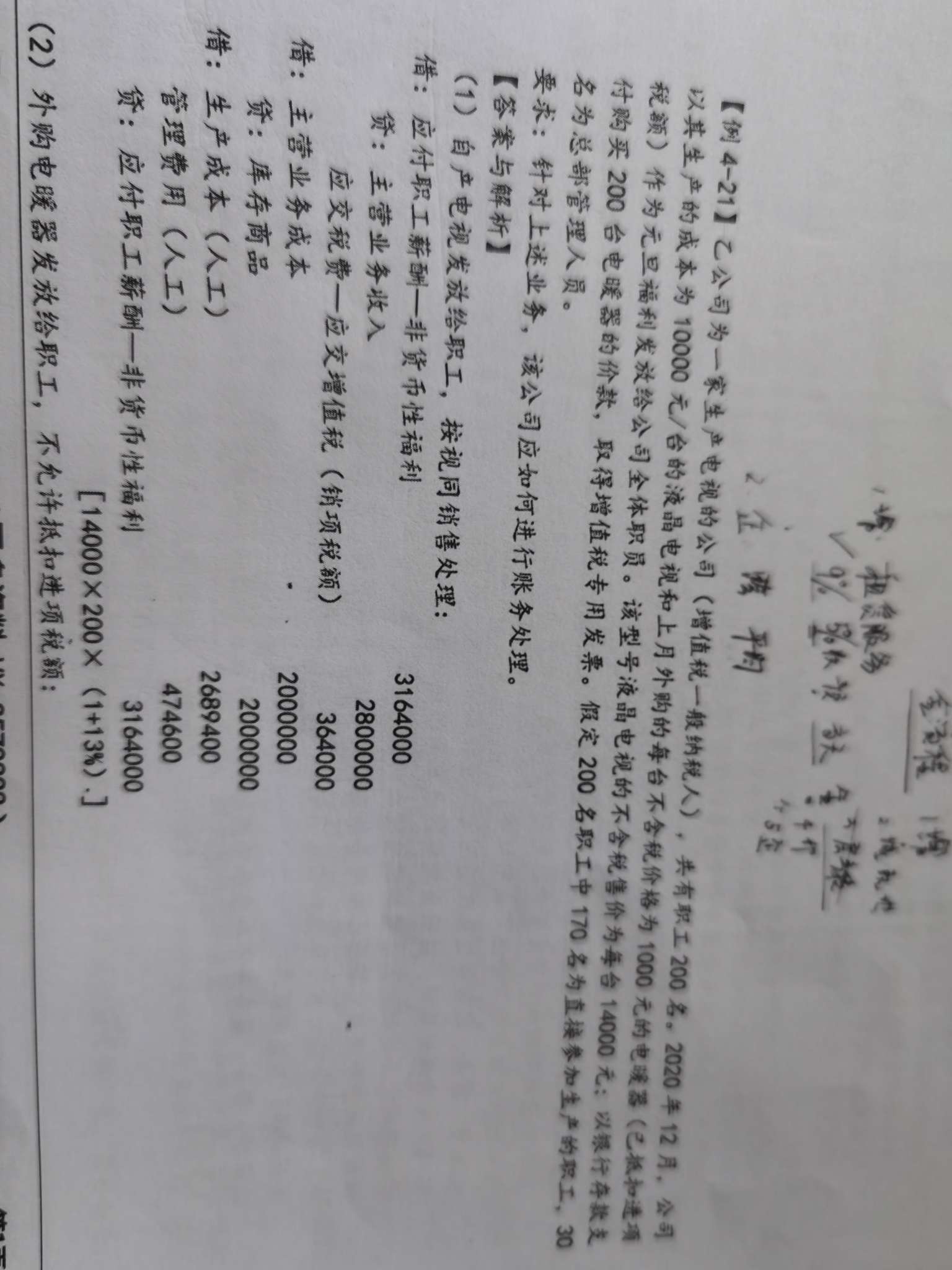 1.计入到生产成本和管理费用(按照售价14000为基础),这里结转的并不是电视机的成本,而是视同将电视机销售了,换来的并不是钱,而是作为一项成本费用,因为给了员工,作为员工的福利了。(相当于收入换来的不是钱,而是作为了一项福利费用支出了)