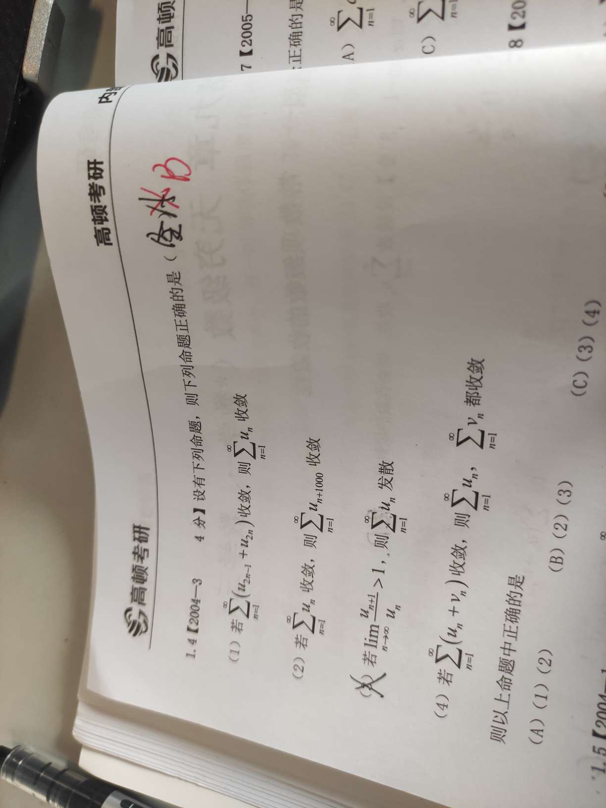 教师回复: 是这么理解的:正项级数收敛就意味着它们加起来是等于一个常数的,而偶(奇)数项只是正项级数的一部分,那么它们加起来肯定也是一个常数,所以是收敛的。严格的证明需要按照正项级数收敛的定义,用单调有界定理来证明。