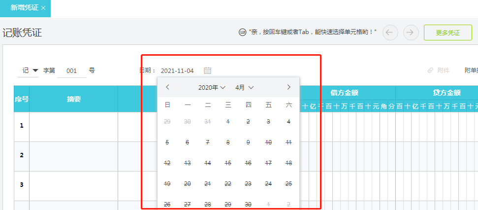 这个填制凭证的日期只能是当期。