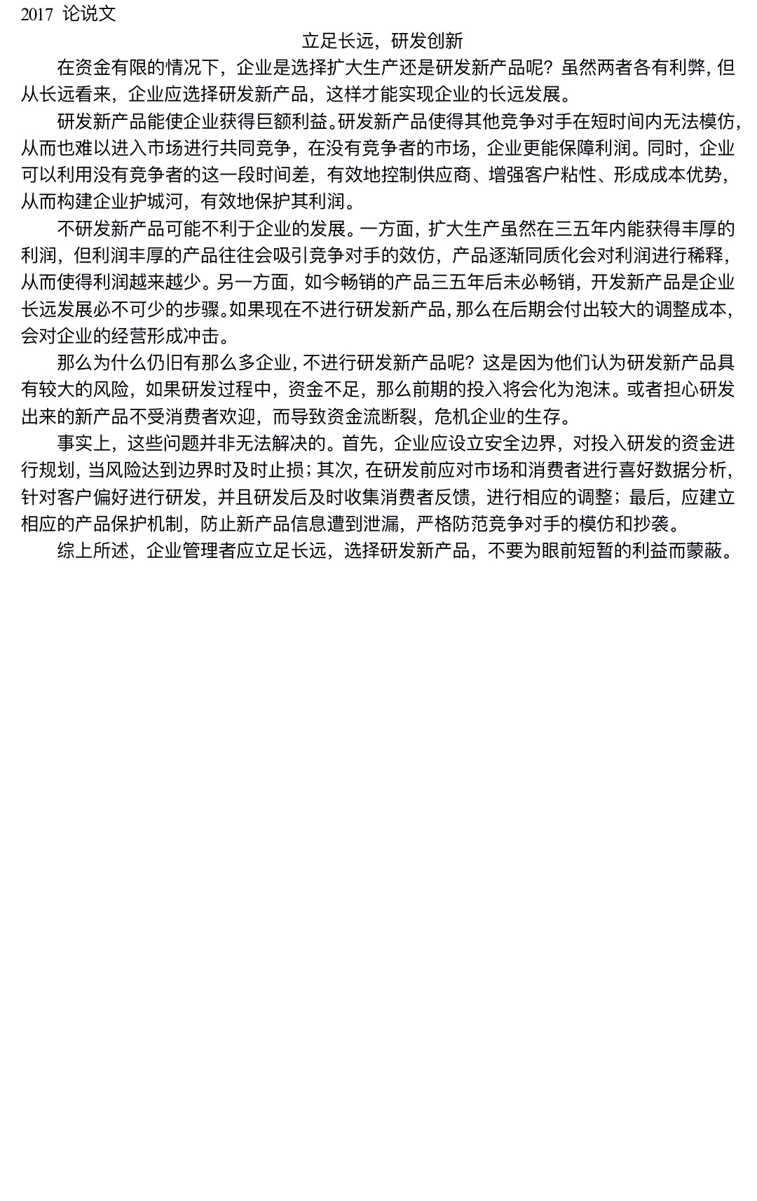 麻烦帮我修改一下2017年论说文并给一个分数,感谢