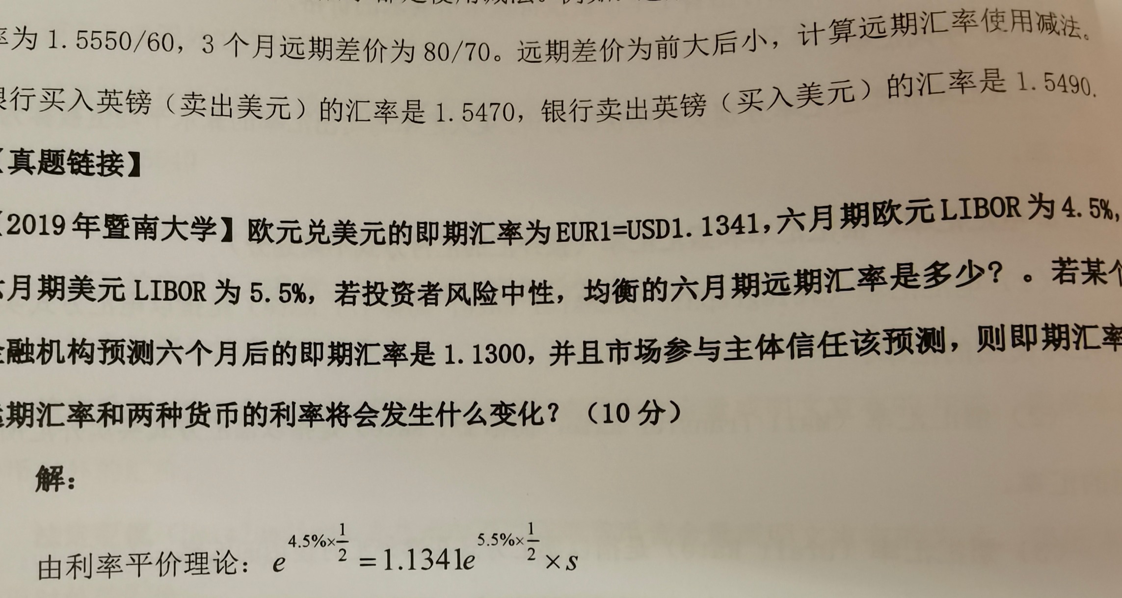 利率平价原理:本国的货币在本国的利率下的获利=本国的货币在外...