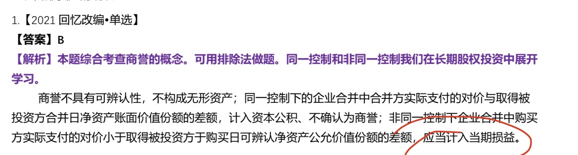 同学问的就是权益法下初始投资成本的调整,购买价款小于被投资方公允价值份额,差额计入营业外收入;