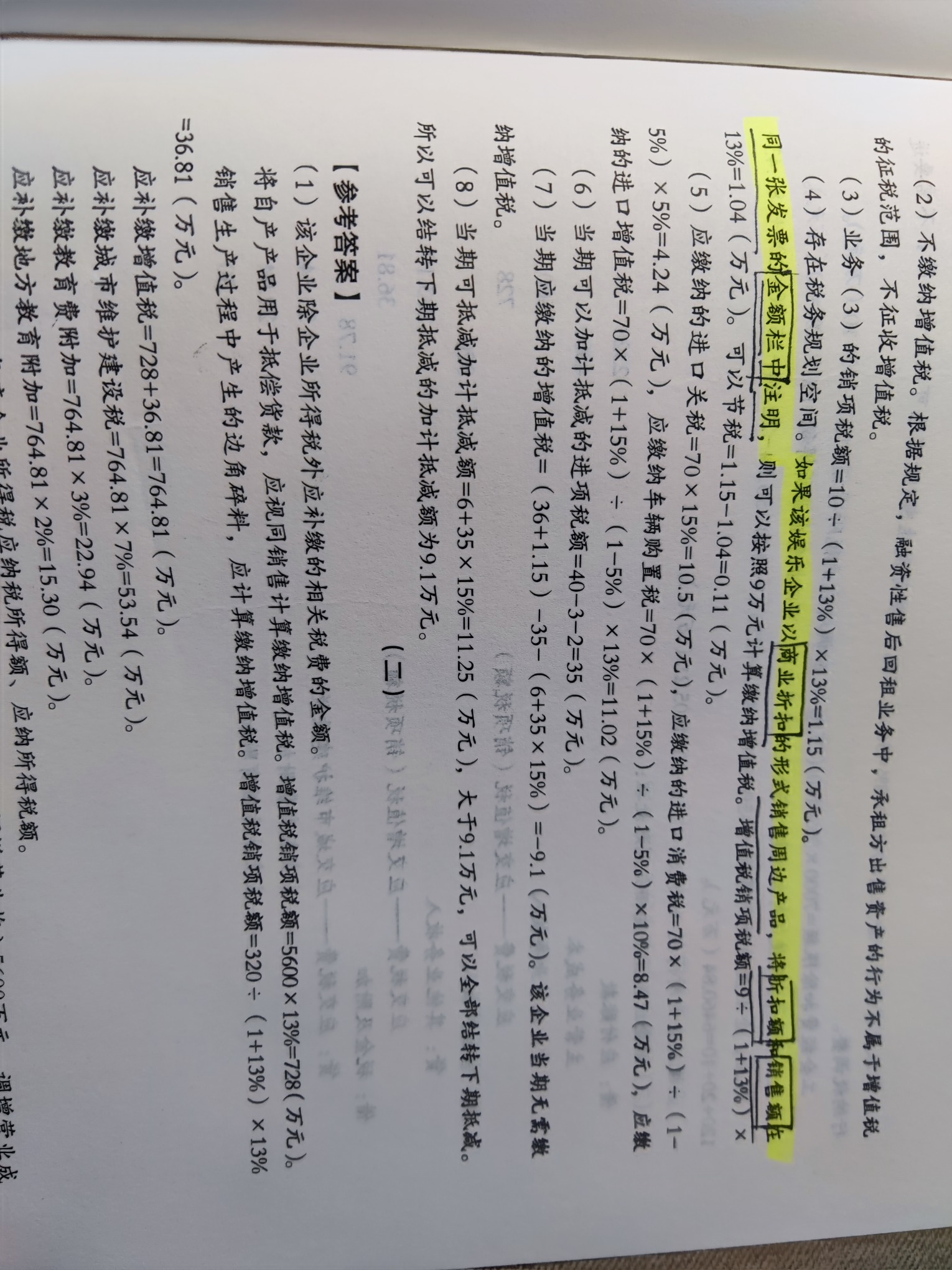 由于之前计算可得当期未抵减前的应纳税额=[36+1.15-(40-3-2)] = 2.15,第八问求的是可以结转至下期的加计抵减额,由于加计抵减额11.5,进一步可以抵减应纳税额,最低抵减未0,最后抵减结果是不是1.25-2.15=9.1,剩余不能抵得部分,留待下期抵即可。