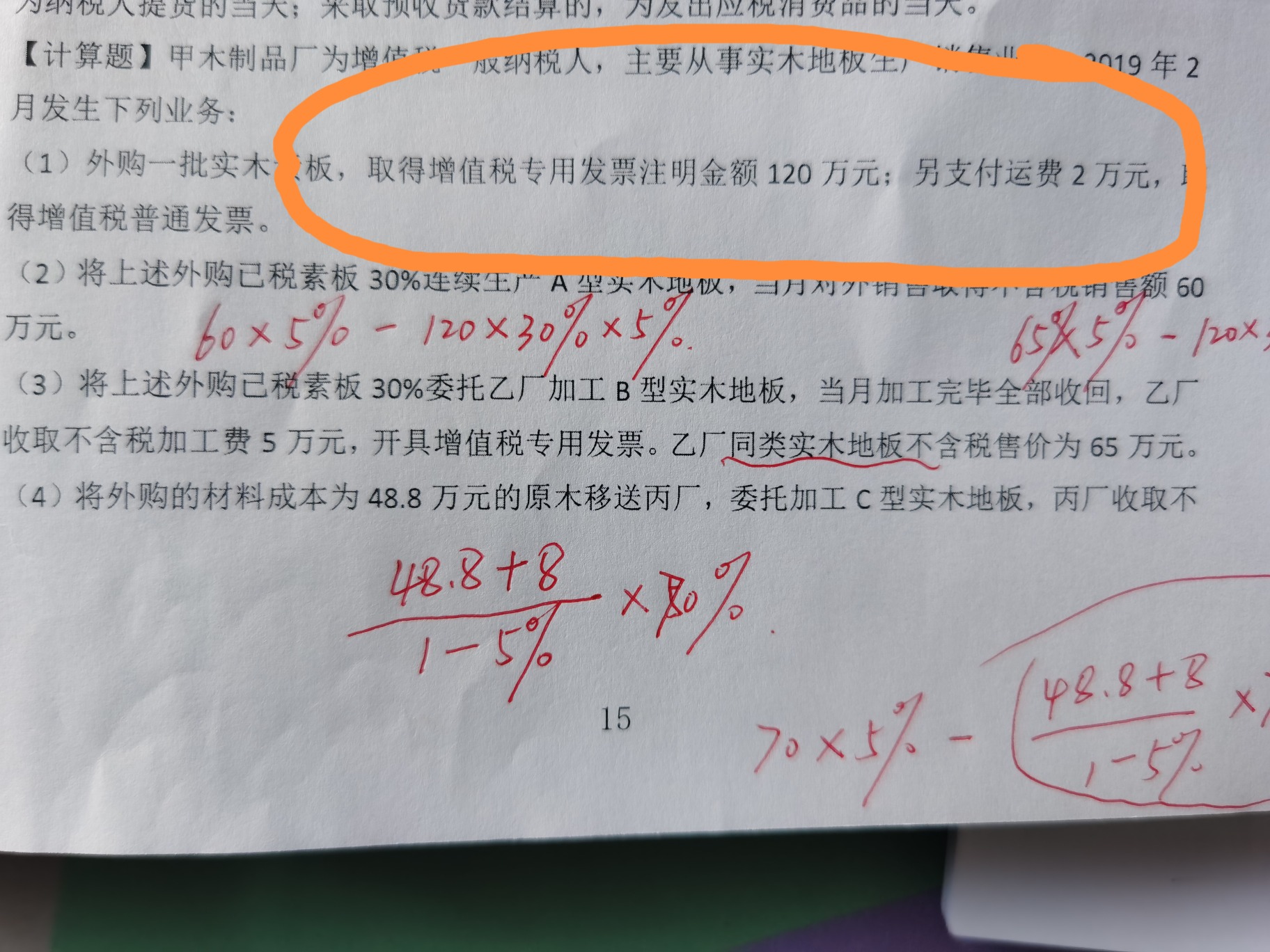 老师,第一图是题干,第二图是答案!我不清楚为什么没有把支付的2万元运费作为价外费用和120万元一起算消费税呢?这2万不是采购实木地板的价外费用吗?第三图中不是说明白的,运输装卸费是价外费用呀?