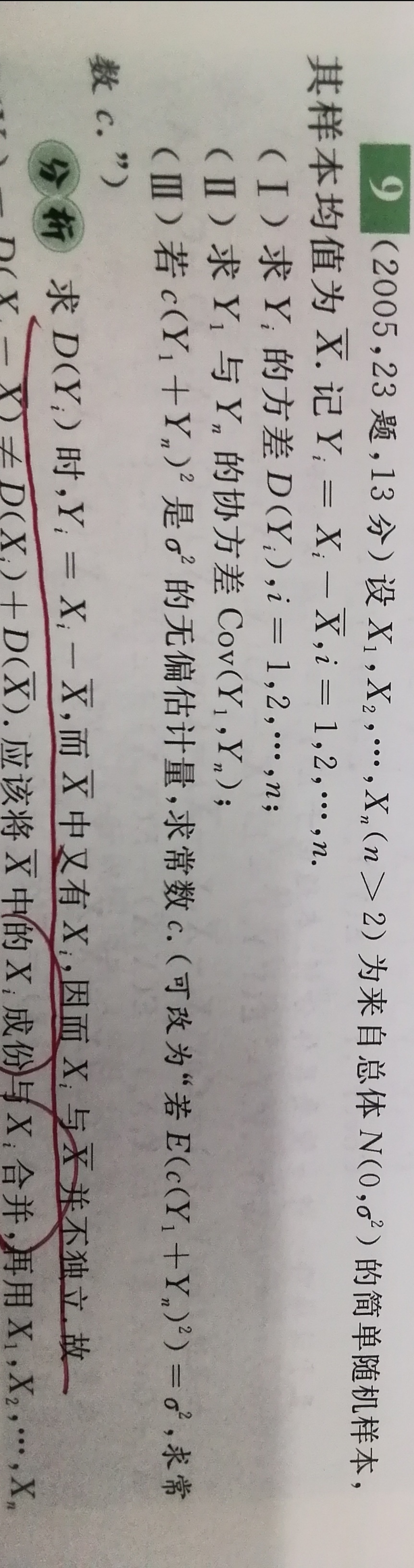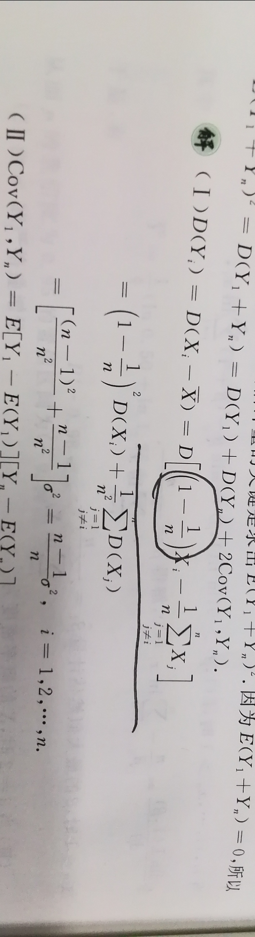 老师,你好哦,第九题第一问,第二张是答案,黑笔圈出来的部分我不理解,为什么Xi成了1-1/nXi呢?