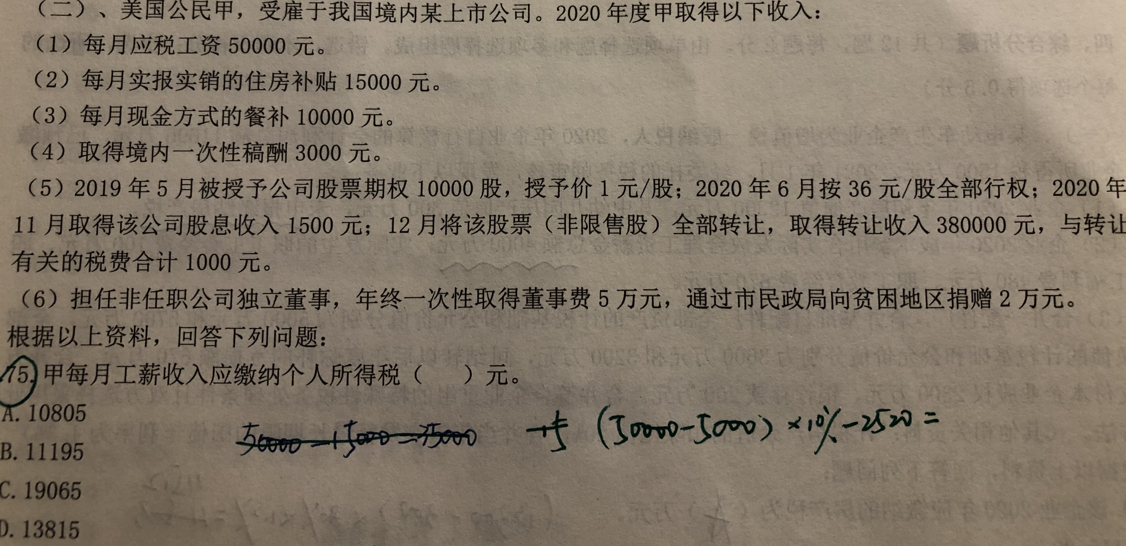 第一问选项是不是有问题?答案中为什么不扣掉实报实销的住房补贴呢?