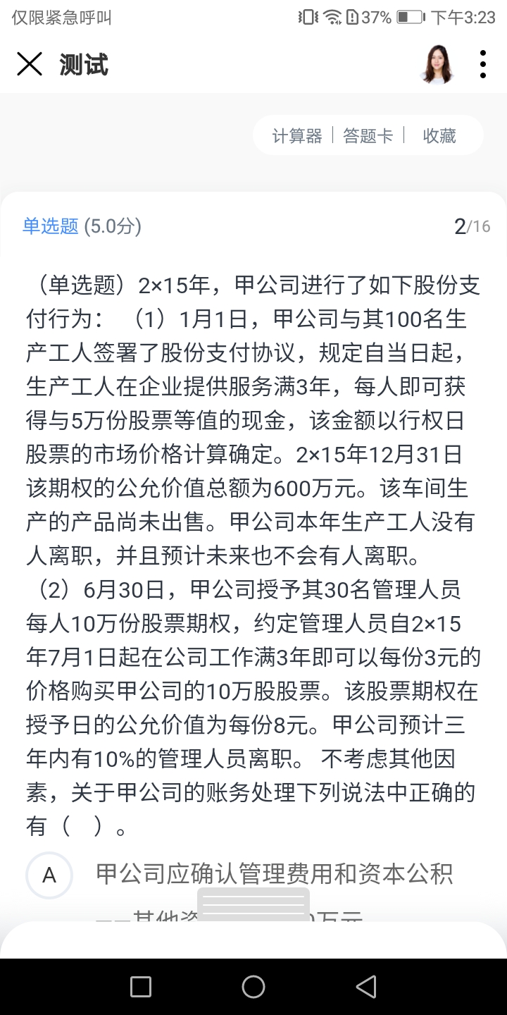 同学可以看一下事项二授予股票期权的时间点,是6月30日,等待期是3年,但是2015年只能确认后半年的金额,所以还要在等待期的基础上再考虑半年的时间权重。