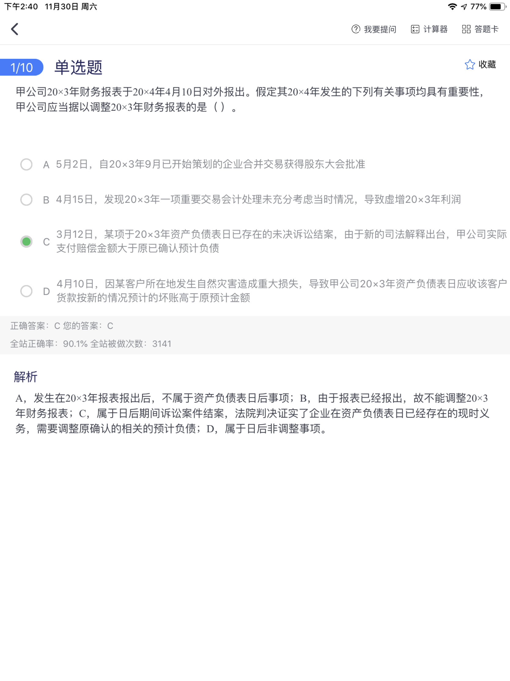 D.这里不应该是“在审计报告日后,cpa没有义务对财报实施任...