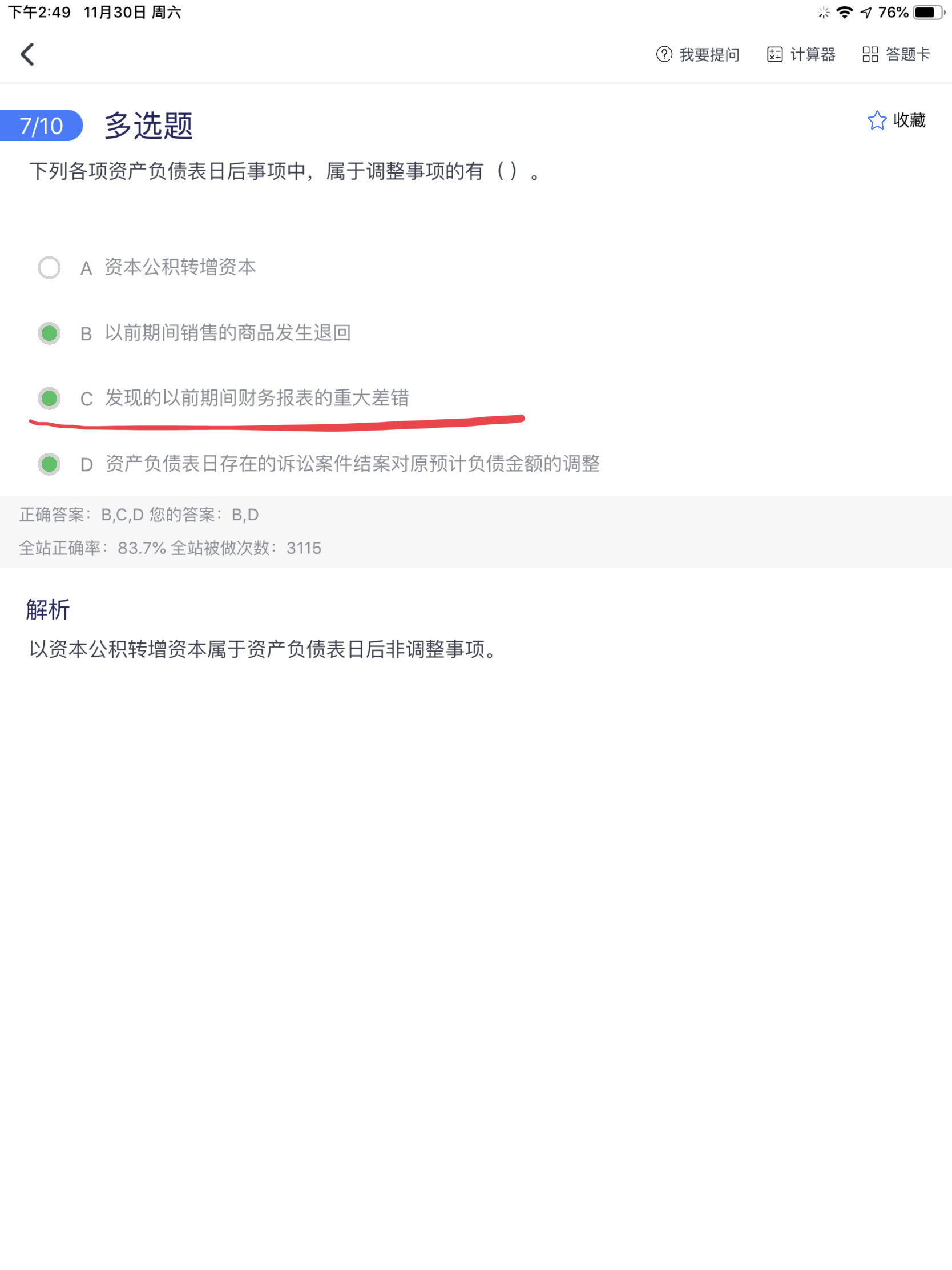 会计单选题怎么能选AB?考题答案出错了?...