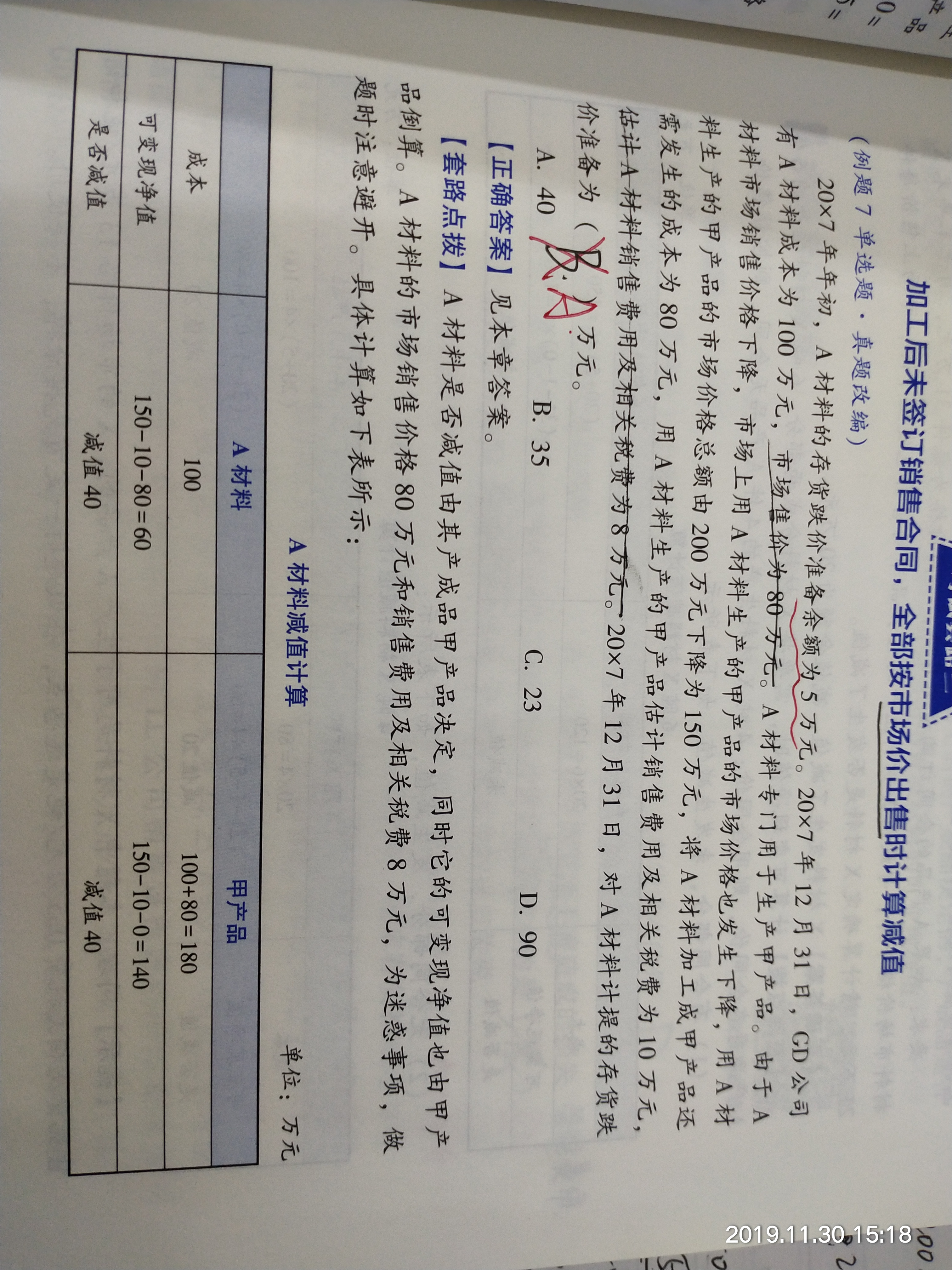 老师,这个题存货跌价准备为5万元,最后应计提的跌价准备不是应该用算出来的40减去5等于35吗?为什么还是40?