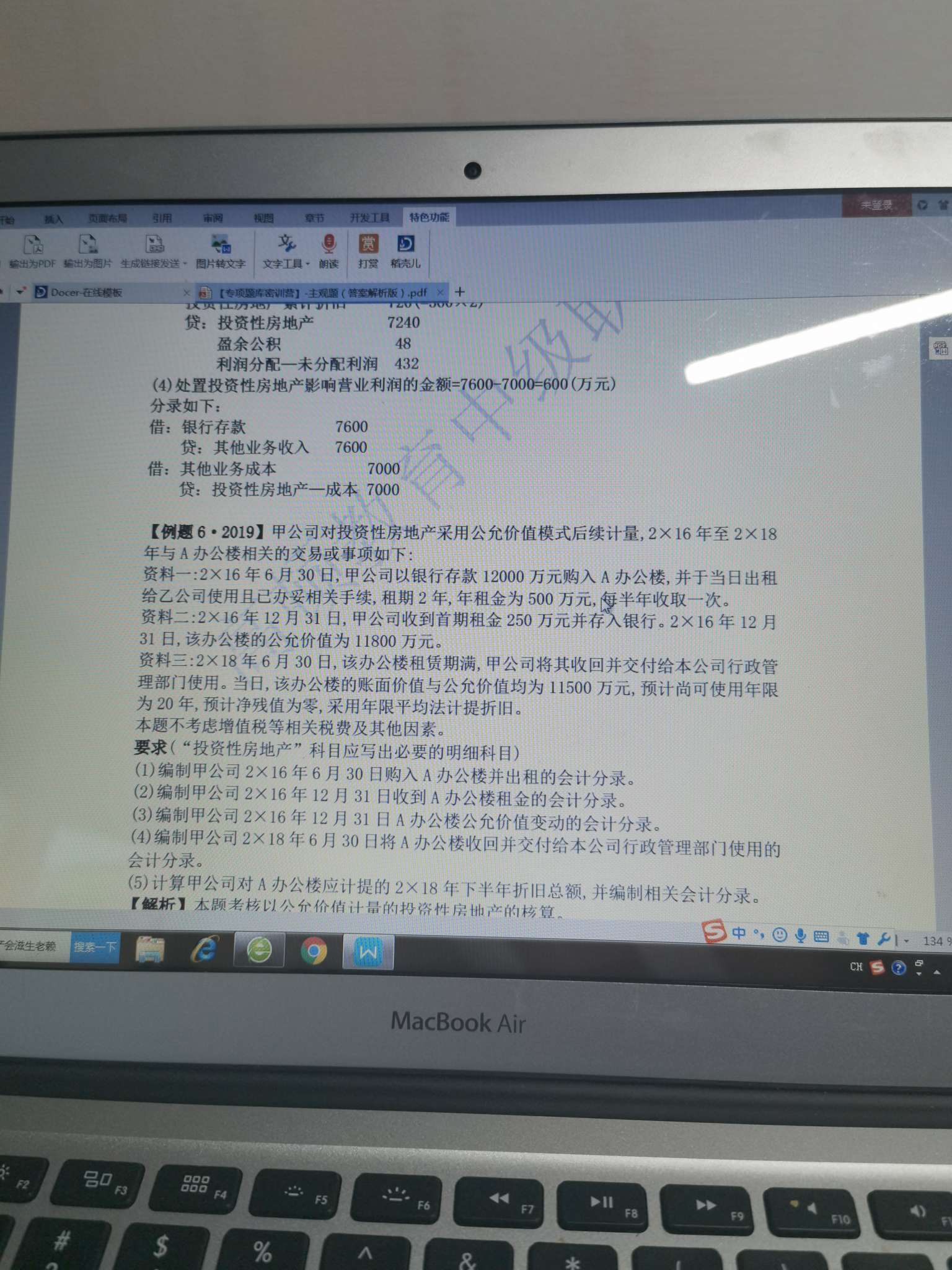 2019.12.31日出售投房,公允价值模式下,求出售投房损...