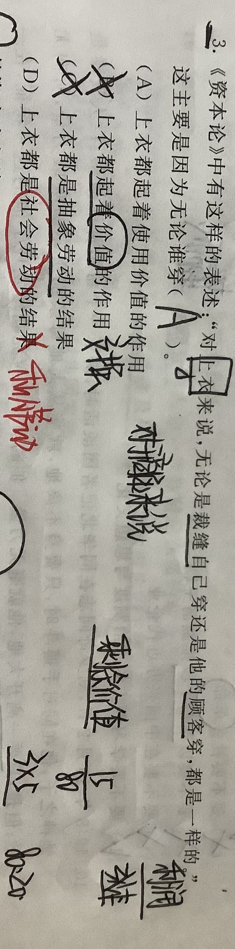 想问下老师第三题的D,上衣没有经过交换,所以才不是社会劳动吗?