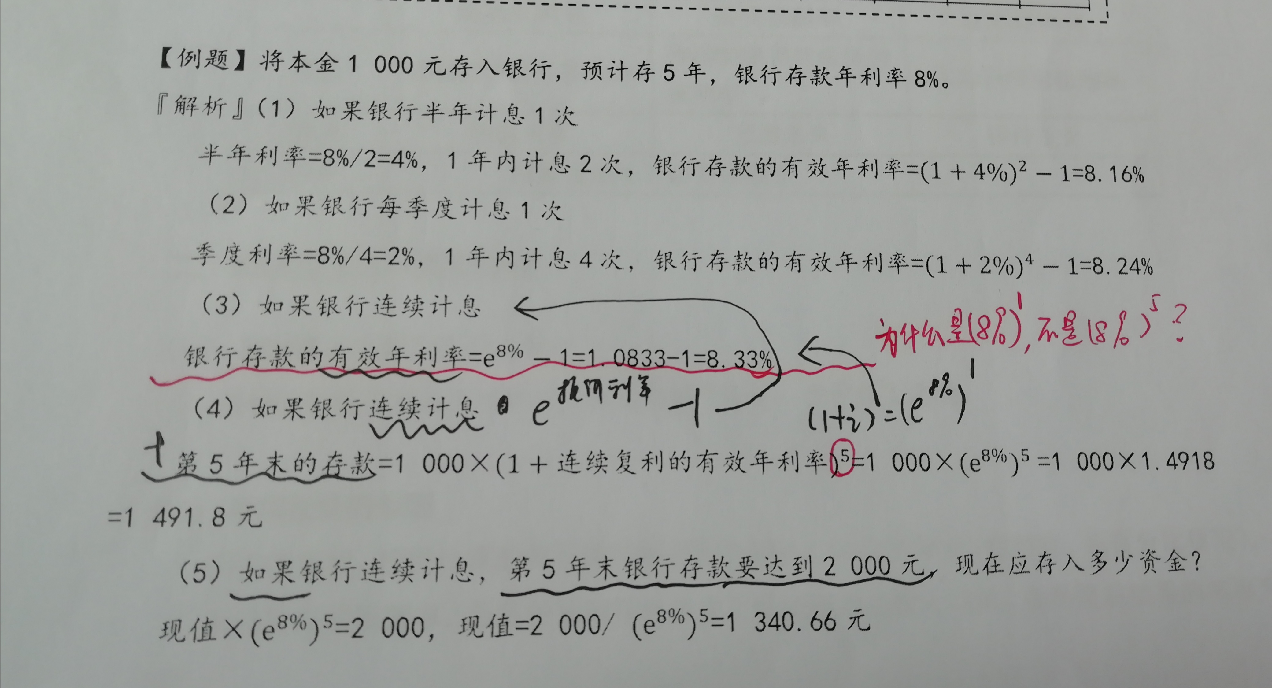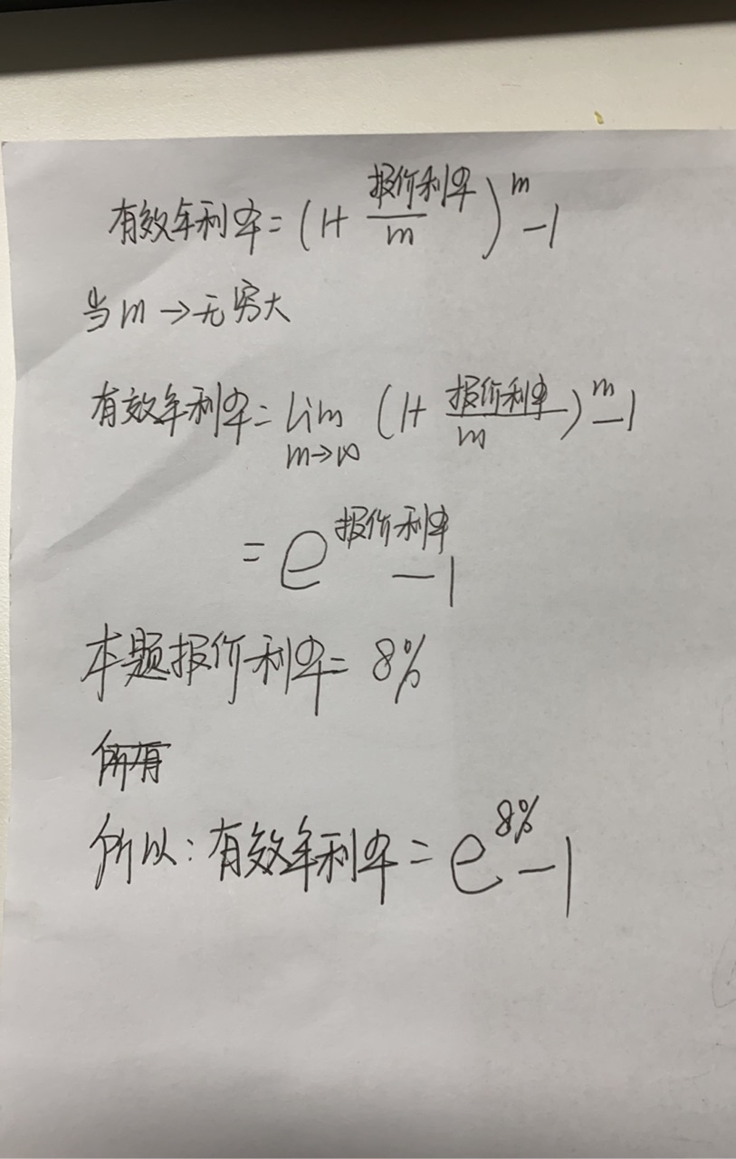 老师您好,请问第三问求连续计息的有效年利率为什么是8%的1次方,不是8%的5次方