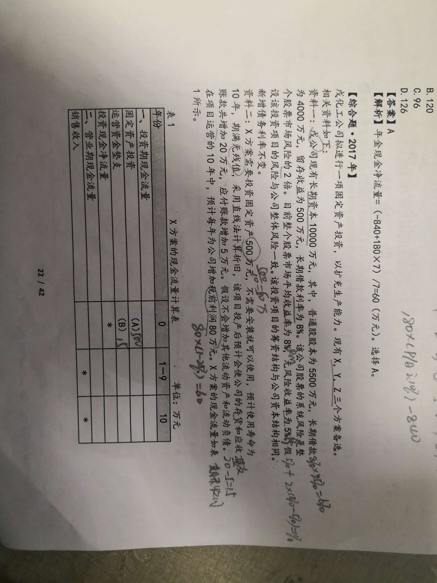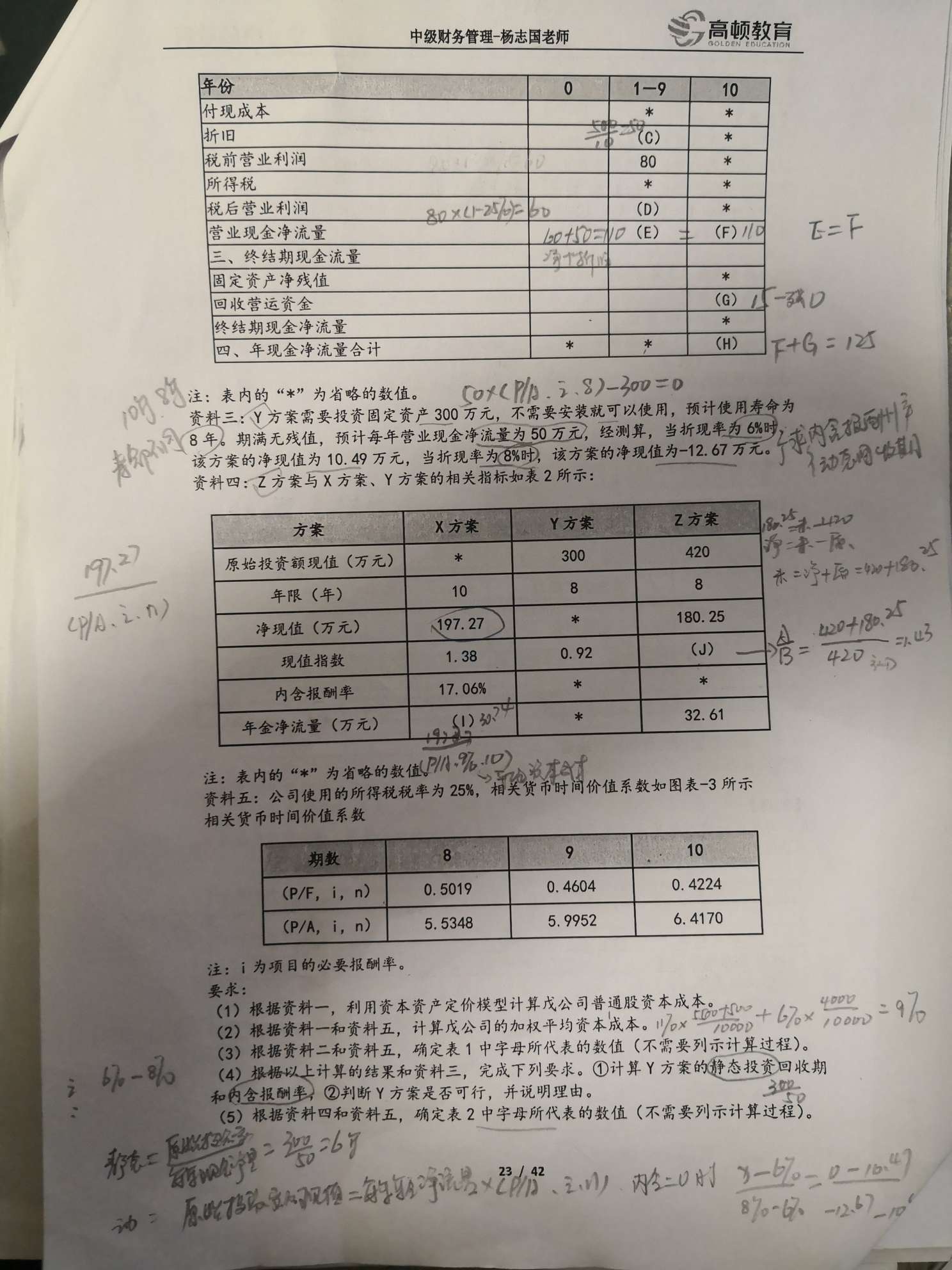 x方累的年金净流量=197.27/(p/A,9%,10) 为什么是用9%?9%是戊公司的加权平均资本成本