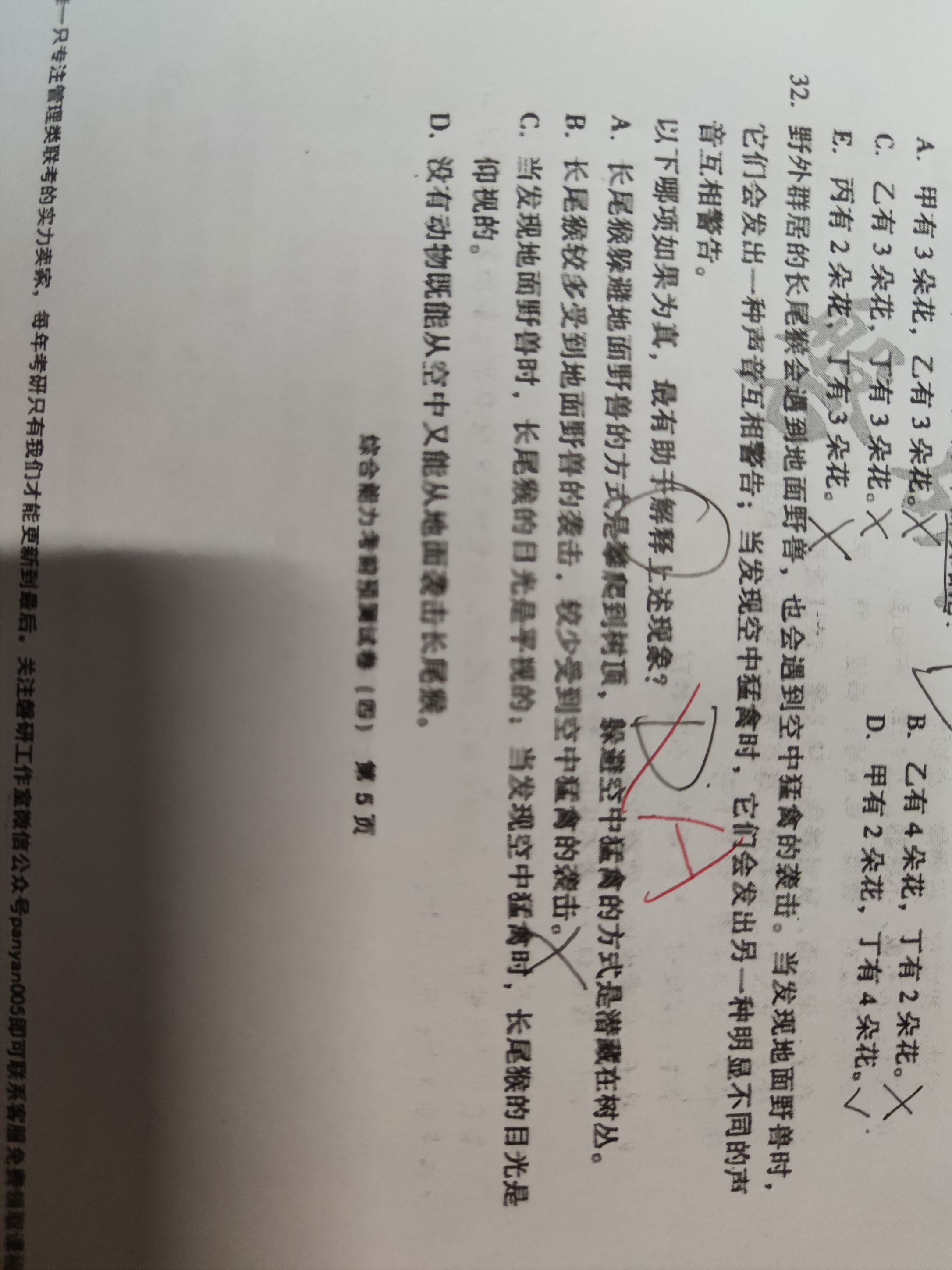 萝同学D选项不需要假设,即使有动物既可以从地面袭击又可以从空中袭击,但是每次袭击长尾猴都可以有不同的反应