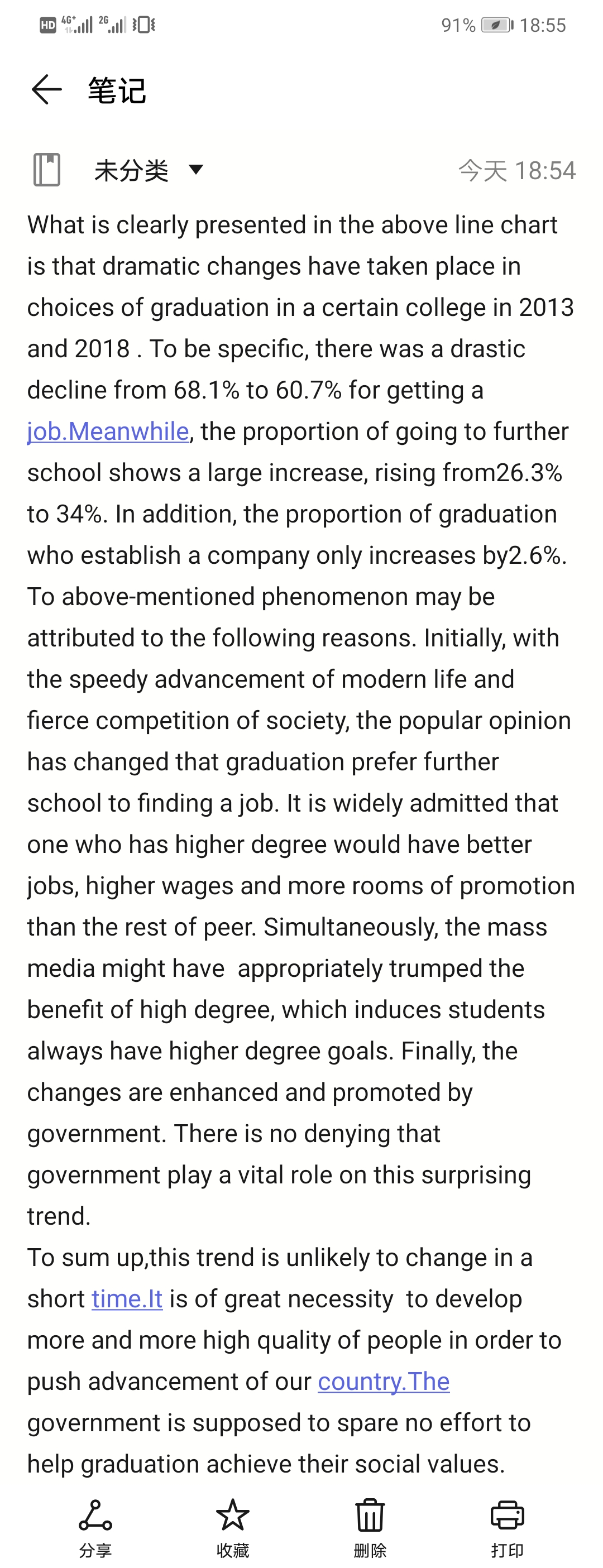 字数其实有点多,考试的时候不用写得太多,不然时间上很紧张。整体来看,同学的用词和句型上还是比较丰富的 ,基本在10-11分