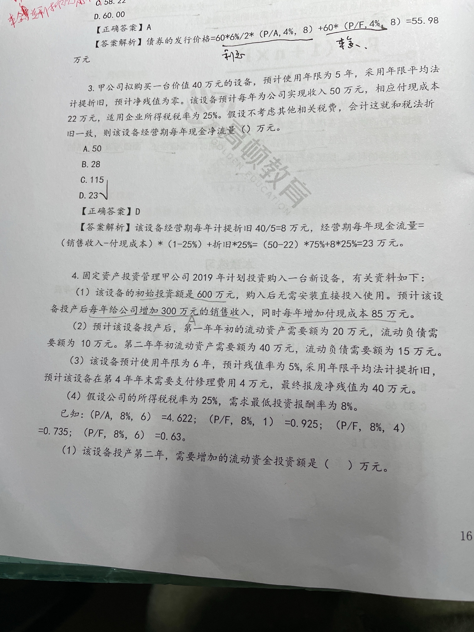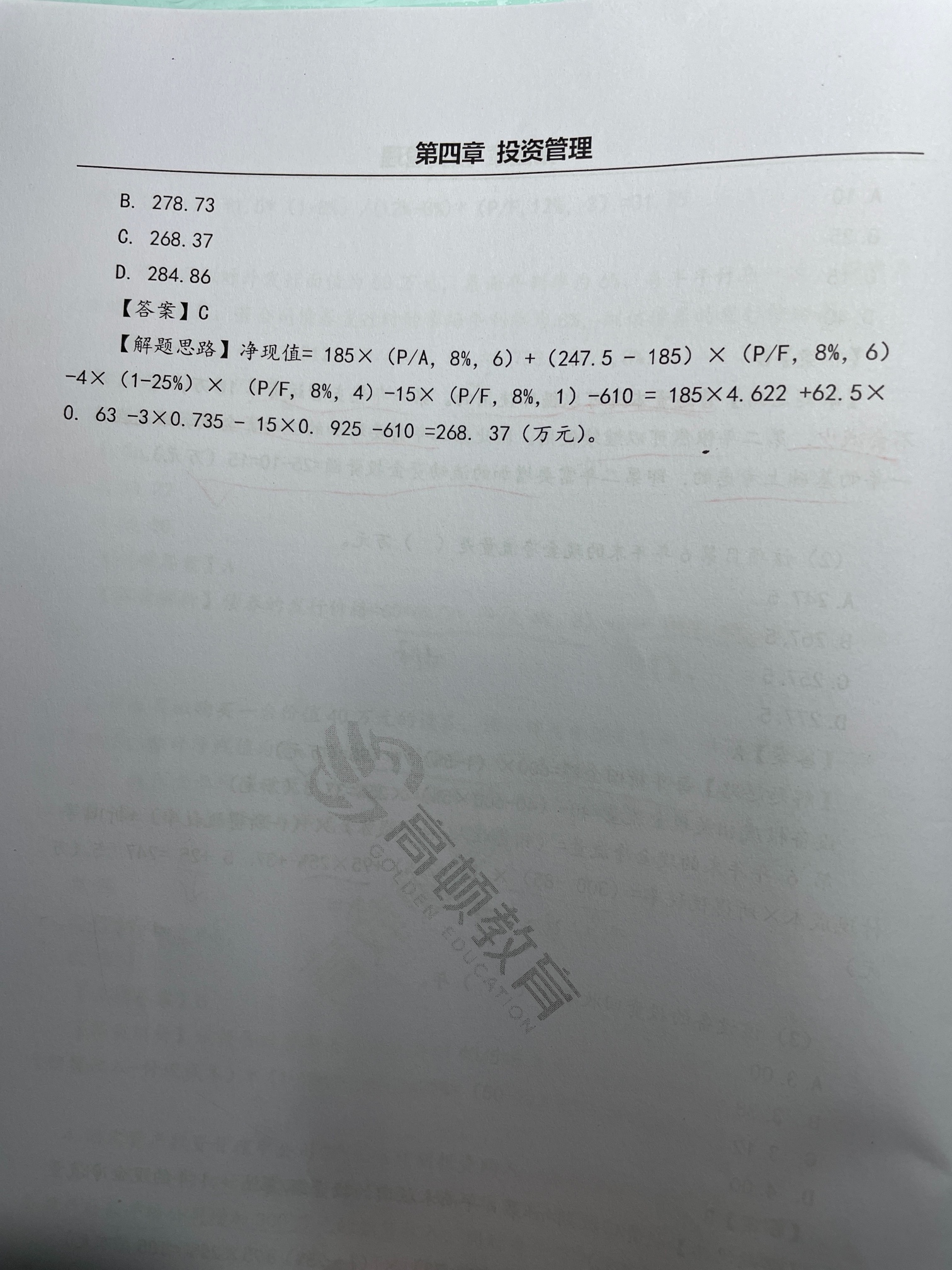 第二问第6年末的现金净流量包含了经营流量,折旧部分的流量,还有营运资金的收回,以及净残值的处置,把这些因素都考虑之后就可以了,