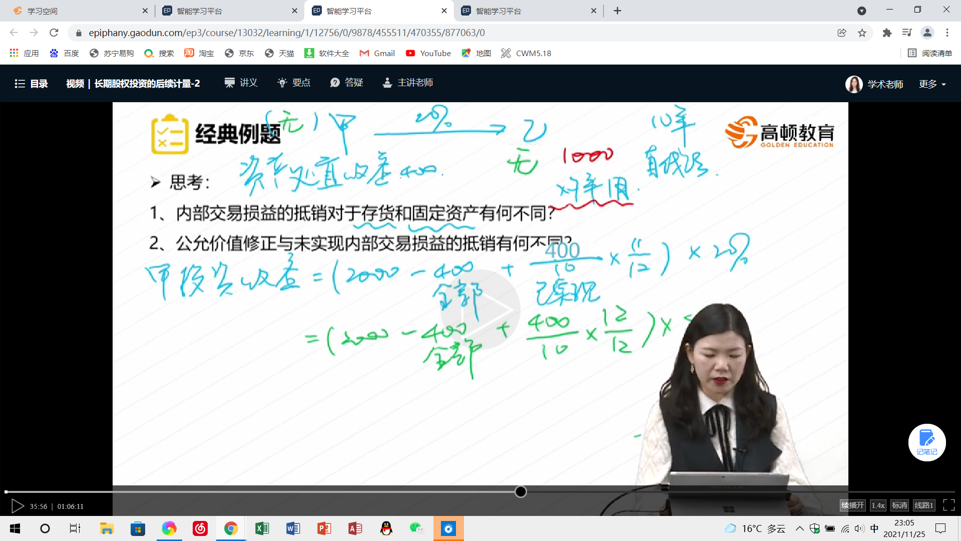 老师,权益法下不能用内部交易那个计算公式进行计算么/...