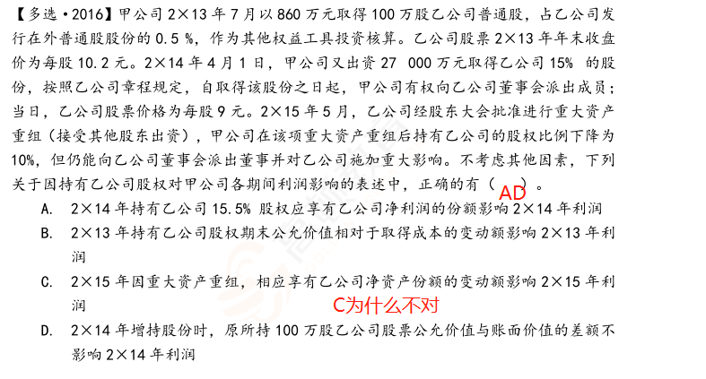 老师,这题关于B选项,总是弄混,什么情况下计入资本公积,什么...